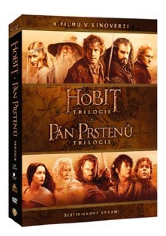 DVD kolekcia obsahuje: Pán prstenů: Společenstvo prstenu S podporou neohroženého společenstva a přátel se skromný hobit FRODO vydává na dobrodružnou cestu s nanejvýš nebezpečným posláním, zničit legendární Jeden Prsten. Služebníci Temného pána SAURONA, který stvořil všechno zlo v prstenu, FRODA zběsile pronásledují. Kdyby pro SAURONA prsten znovu získali, pak by byla Středozem definitivně odsouzena k zániku. Epický příběh o boji dobra se zlem, o moci přátelství, osobní odvaze a oběti, získal čtyři ocenění Akademie a Vás přenese do světa nekonečné fantazie. Pán prstenů: Dvě věže Druhý díl filmové ságy o nebezpečném putování jehož cílem má být zničení prokletého Prstenu moci začíná tam kde první skončil. Po smrti Boromira a rozpadu Společenstva se cesty jeho členů rozdělily. Hobbit Frodo se svým sluhou Samem putují s Prstenem do Mordoru a Aragorn s elfem Legolasem a trpaslíkem Gimlim se vydávají po stopě skřetů, aby osvobodili z jejich zajetí hobbity Smíška a Pippina. Mezitím však sílí moc temného pána Saurona, který se spojil se zrádným čarodějem Sarumanem a společně upínají všechny síly k získání Prstenu. Naše hrdiny tak čeká ještě dlouhé putování a mnohé nástrahy, než se jim podaří Prsten moci jednou provždy zničit Pán prstenů: Návrat krále Nadchází čas rozhodující bitvy o přežití Středozemě. Putování jednotlivých členů Společenstva prstenu se dostává do poslední a rozhodující fáze. Čaroděj Gandalf, elf Legolas a trpaslík Gimli spěchají s dědicem trůnu Aragornem na pomoc zemi Gondor, která odolává ohromnému Sauronovu vojsku. Hobiti Frodo a Sam se v doprovodu Gluma snaží dostat hluboko do země Mordor, kde musí v ohních Hory osudu zničit magický Prsten moci. Jedině tak bude síla mocného pána temnot Saurona zlomena. Podaří se jim naplnit poslání Společenstva a zachránit Středozem? A za jakou cenu? Hobit: Neočekávaná cesta První díl trilogie Hobit: Neočekávaná cesta natočený na námět stejnojmenné nadčasové klasiky z pera J. R. R. Tolkiena sleduje hlavního hrdinu Bilba Pytlíka. Ten je spolu s čarodějem Gandalfem a třinácti trpaslíky vedenými Thorinem Pavézou vržen do velkolepého dobrodružství: musí od strašlivého draka Šmaka vydobýt zpět ztracené království trpaslíků Erebor. Cesta je zavede do Velké divočiny, přes zrádný kraj plný skřetů, orků a smrtících vrků i za tajemnou a zlověstnou postavou známou jen jako Černý mág. Během putování prosťáček Bilbo nejen odhalí hluboko v sobě lstivost a odvahu, která překvapí i jeho samotného, ale také získá "miláška"- prsten, který je svázán s osudem celé Středozemě tak, že si to Bilbo neumí ani představit. Hobit: Šmakova dračí poušť Hobit: Šmakova dračí poušť líčí další dobrodružství hobita Bilbo Pytlíka na jeho společné pouti s čarodějem Gandalfem a třinácti trpaslíky vedenými Thorinem Pavézou. Vydali se na výpravnou cestu, jejímž cílem je získat zpět Osamělou horu a ztracené království trpaslíků Erebor. Poté, co přežili začátek své neočekávané cesty, pokračuje tato společnost směrem na Východ a cestou potkává kožoměnce Medděda a v lese Mirkwood plném nástrah se střetává s houfem obřích Pavouků. Když se jim podaří uniknout ze zajetí nebezpečných lesních elfů, pokračují trpaslíci k Jezernímu městu a nakonec k samotné Osamělé hoře, kde musí čelit největšímu nebezpečí v podobě Šmaka - nejstrašlivější nestvůry, která prověří nejen jejich odvahu, ale i pevnost jejich přátelství a smysluplnost celé pouti. Hobit: Bitva pěti armád "Hobit: Bitva pěti armád" uzavírá epické dobrodružství Bilbo Pytlíka, Thorina Pavézy a skupiny trpaslíků. Když se jim v boji proti draku Šmakovi podařilo dobýt zpět svou vlast, nechtěně vypustili do světa smrtící sílu. Rozzuřený Šmak dští svůj spalující hněv na bezbranné muže, ženy a děti v Jezerním městě. Thorinova posedlost hromaděním znovu nabytého pokladu, kterému i přes Bilbovu snahu obětuje přátelství i čest, dožene Hobita k zoufalému a nebezpečnému rozhodnutí. Ale ještě větší nebezpečí je čeká. Sauron, o jehož krocích nikdo kromě čaroděje Gandalfa nic netuší, tajně vyslal obrovskou armádu Skřetů, aby zaútočila na Osamělou horu. S tím, jak se stahují mračna stupňujícího se konfliktu, jsou Trpaslíci, Elfové a Lidé postaveni před volbu, zda se sjednotí či budou zničeni. Budoucnost Středozemě visí na vlásku a v epické bitvě pěti armád bojuje Bilbo o život svůj i svých přátel.