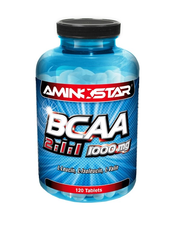 Aminostar BCAA 2:1:1 jsou větvené aminokyseliny L-Leucin, L-Isoleucin a L-Valin v poměru 2:1:1. BCAA jsou velmi důležité aminokyseliny, které ocení především intenzivně trénující sportovci a osoby v redukčních dietách.Základní denní dávka jsou 3 tablety 30-60 minut před fyzickým výkonem nebo 3 tablety ihned po fyzickém výkonu.Počet dávek v balení:.40 x 3 tablety.Optimální doba užívání:.před tréninkem po tréninku.v 1 kapsli.L-Isoleucin.250 mg.L-Leucin.500 mg.L-Valin.250 mg.V 1 dávce: L-Leucin 1500mg, L-Isoleucin 750mg, L-Valin 750mg, látky protispékavé: mikrokrystalická celulóza, hydrogenfosforečnan vápenatý, stearát hořečnatý, oxid křemičitý; stabilizátor: zesíťovaná sodná sůl karboxymethylcelulózy.Přípravek není určen pro děti. Ukládejte mimo dosah dětí. Přípravek není určen k používání jako náhrada pestré stravy. Nepřekračujte doporučenou denní dávku! Skladujte při teplotě do 25oC. Chraňte před mrazem! Výrobce neručí za škody způsobené nevhodným použitím nebo skladováním. Po otevření spotřebujte do 6 měsíců.