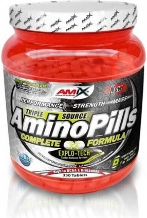 Popis AMIX Amino Pills 330 tblAmix™ Amino Pills je nový aminokyselinový prípravok ideálny pre obdobie intenzívneho cvičenia a diéty, pretože má veľmi nízký obsah tuku a cukru. Amix™ Amino Pills je založený na unikátnom komplexu "Triple source amino complex" zloženého so srvátkového hydrolyzátu, hoväzieho hydrolyzátu a sojového proteinového isolátu. Vďaka tomu môže dodat telu vyvážené spektrum vysoko kvalitných aminokyselín.Zloženie (v 5-tich tabletkách):. CreaPep® Enhanced Hydro Protein Blend 7000 g (Hydrolyzovaný srvátkový proteínový izolát (z mlieka), micelárny kazeín (z mlieka), hydrolyzovaný srvátkový proteínový koncentrát (z mlieka), hydrolyzovaný hovädzí proteín, hydrolyzovaný vaječný albumín ), GH Boosting Matrix 3000 mg (Taurín 1750 mg, L-Glycín 500 mg, L-Lyzín 500 mg, L-Carnitín tartrát 150 mg, L-ornitín 50 mg, L-Citrullin malát 50 mg), Triple-Creatine Matrix 1500 mg (Creatin monohydrát, Creatin HCL, Creatin nitrát), látka protihrudkujúca: mikrokryštalická celulóza; stabilizátor: hydrolyzovaný kolagén, inulín; látka protihrudkujúca: oxid kremičitý, stearát horečnatý; kyseliny: kyselina citrónová, kyselina jablčná; aróma, sladidlo: sukralóza .Doporučené dávkovanie: Užívajte 5 tablet dvakrát alebo trikrát denne medzi jedlom. Zapite väčším množstvom vody. Pre maximálny účinok pridajte jednu dávku pred spaním. .Výhody:.. podporuje rast svalovej hmoty.. zvyšuje pevnosť a sílu.. prispievá k rychlejšiej regenerácii.. obsahuje všetkych 8 esenciálných aminokyselin.. výborná nutriční kvalita.Supplement Facts:.Serving size: 5 tablets Servings Per Container: 50.Amount Per Serving .% Daily Value.Calories: 46 Calories from Fat: < 9.Protein.6,9 g.13,8 %.Total Carbohydrate.2,4 g.0,8 %. Sugars.< 0,3 g.