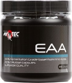 Doplněk stravy s obsahem komplexního spektra esenciálních aminokyselin v celulózových kapslích. Aminokyseliny jsou získané 100% pomocí fermentační technologie, produkt je vhodný i pro vegany. EAA MyoTec = Maximální využitelnost a kvalita Jednotlivé aminokyseliny jsou zastoupeny ve speciálním stechiometrickém poměru, který odpovídá nejnovějším poznatkům a garantuje optimální průběh proteosyntézy v souvislosti s principem tzv. Rubnerova a Wolfova zákona. Rubnerův zákon limitní aminokyseliny uvádí, že využití aminokyselin z přijatých bílkovin závisí na obsahu nejméně zastoupené aminokyseliny. To konkrétně znamená, že z přijatých aminokyselin se jich do vlastních proteinů zabuduje jen tolik, kolik odpovídá množství nejméně zastoupené esenciální aminokyseliny. Wolfův zákon nadbytku esenciálních aminokyselin varuje, že dlouhodobý nadbytečný příjem libovolné esenciální aminokyseliny (např. BCAA) narušuje metabolismus ostatních aminokyselin a zesiluje projevy limitní aminokyseliny. MyoTec EAA proto nabízí vysoce funkční a zcela vyváženou směs esenciálních aminokyselin včetně BCAA, která je pro náš organismus přirozená a nezpůsobuje žádné dlouhodobé nerovnováhy. Balení: 240 kapslí (267,1 g) Dávkování: Systém č. 1: Berte 3-5 kapslí cca 30 minut před zahájením tréninku, dalších 3-5 kapslí bezprostředně po ukončení tréninku. Zapijte dostatečně vodou. Systém č. 2: Dávkujte 5 kapslí bezprostředně po ukončení tréninku. Zapijte dostatečně vodou. Upozornění: Není určeno pro děti, adolescenty, těhotné a kojící ženy. Nepřekračujte doporučené denní dávkování. Neslouží jako náhrada pestré a vyvážené stravy a zdravého životního stylu. Uchovávejte mimo dosah dětí. Skladujte při teplotě do 21°C, chraňte před vlhkem a přímým slunečním zářením. Může obsahovat stopy lepku, sóji, mléka (včetně laktózy) a bílkoviny slepičích vajec. Složení v jedné kapsli: EAA v 1 kapsli zdroj L-leucin 242,3 mg fermentace L-lysin HCl 135,9 mg fermentace L-fenylalanin 122,6 mg fermentace L-valin 121,1 mg fermentace L-isoleucin 121,1 mg fermentace L-threonin 105,5 mg fermentace L-methionin 66,5 mg fermentace L-tryptofan 35,2 mg fermentace Obal kapsle (hydroxypropylmethyl celulóza) Doplněk stravy. S oblibou používají:.běžná populace.rekreační sportovci.siloví sportovci (kulturistika, fitness, silový trojboj, vrh koulí, hod kladivem, sprint, plavání na krátké vzdálenosti aj.).silově-vytrvalostní sportovci (fotbal, lední hokej, pozemní hokej, ragby, košíková, běhy a plavání na střední vzdálenosti aj.) vytrvalostní sportovci (běhy, dálkové plavání, triatlon, cyklistika, běh na lyžích aj.).Doplněk stravy. Určeno pro zvláštní výživu - vhodné pro sportovce. Obrázek je pouze ilustrativni a pro představu, nemusí vyobrazovat aktuálně dostupnou variantu.