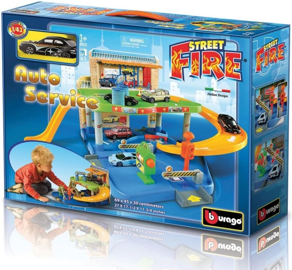 Garáž pre chlapcov, rozmery: 45cm×60cm×30cm, materiál: plast, vhodné od 3 rokov.Garáž Bburago urobí radosť každému malému milovníkovi áut a autodráh. Garáž skvele poslúži či už na opravu, umytie alebo natankovanie vašich autíčok. Garáž Bburago má dve poschodia, ktoré sú prepojené zvažujúcimi cestami, ktoré vedú až k zdvíhacej bráne. S autíčkom môžete prejsť medzi kefami autoumyvárne alebo zaparkovať v krytom státiu. Sada obsahuje veľa doplnkov. Hra učí deti logickému mysleniu a rozvíja fantáziu, zručnosť a trpezlivosť. Celý autoservis je vyrobený z kvalitného plastu. Vhodné pre deti od 3 rokov. Kľúčové vlastnosti garáže Bburago autoservisDvojposchodová garáž pre autíčkaDve zjazdové dráhyZdvíhacia bránaGaráž Bburago rozvíja detskú kreativitu a logikuVyrobené z kvalitného plastuMožno ľahko zložiť a rozložiťGaráž Bburago má pestré farebné vyhotovenieRozmery:69 × 45 × 30 cm.