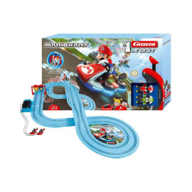 Dětská autodráha Carrera First 63028 Mario Nintendo je autodráha určena pro děti od tří let s autíčky a dráhou v měřítku 1:50. Napájení autodráhy je na baterie.Autíčka z těchto autdráh mají kontaktní kartáčky a magnety pro lepší přilnavost k dráze.Autodráhy Carrera jsou přesné a stabilně provedené dráhy, jednotlivé díly autodráhy se sestavují za pomocí systému svorek. Obsah balení: