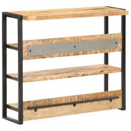 Popíjejte své oblíbené víno nebo si vychutnávejte vynikající jídlo s vaší rodinou a přáteli u tohoto unikátního barového stolku. Dřevěný barový stolek je skvělým doplňkem do vaší kuchyně nebo jídelny, protože ho také může používat jako jídelní stůl. Pultový stolek je vyrobený z hrubého mangovníkového dřeva. Mangovník je tropické tvrdé dřevo, které unese velkou váhu. Rovněž výborně vzdoruje opotřebení, a proto je příborník stabilní a má dlouhou životnost. Železný rám zaručuje extra stabilitu a také industriální šarm. Řemeslné zpracování a krásná kresba dřeva dává každému kusu nábytku jeho jedinečný a od všech ostatních mírně odlišný charakter. Bistro stolek má 4 police, do kterých si můžete přehledně uložit důležité věci na dosah ruky. Důležité upozornění: Barvy a odstíny dřeva se mohou lišit kus od kusu, takže je každý kus nábytku zcela jedinečný. Výběr kusu k dodání je náhodný.