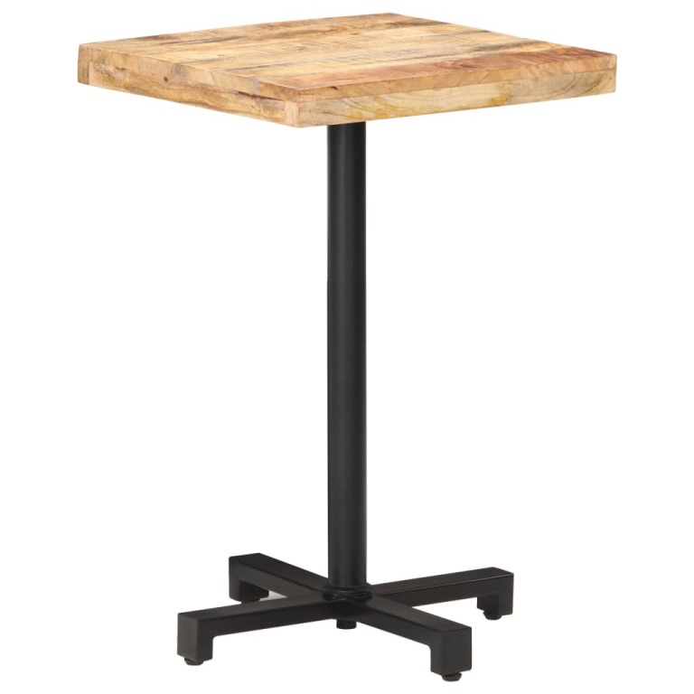 Tento dřevěný bistro stolek se speciálním designem představuje skvělý doplněk do vaší domácnosti či zahrady. Stolní deska je ručně vyrobená z hrubého mangovníkového dřeva s přírodním povrchem. Jedná se o tropické tvrdé dřevo, které dokáže unést značnou váhu. Skvěle také odolává opotřebení a působení času, takže je stabilní a dlouho vydrží. Černá základna z práškově lakovaného železa zajišťuje výtečnou rovnováhu a pevnost. Tento jídelní stůl vám rovněž poslouží k odkládání nápojů či jiných věcí, které chcete mít vždy po ruce. Důležité upozornění: Barvy a odstíny dřeva se mohou lišit kus od kusu, takže je každý kus nábytku zcela jedinečný. Výběr kusu k dodání je náhodný.