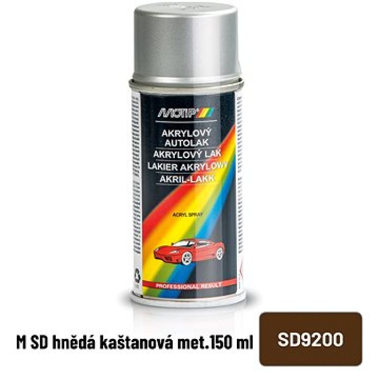 Barva ve spreji, akrylátová, rychleschnoucí a na drobné opravy Pátráte po přípravku, díky kterému budou povrchy vašich věcí vypadat zase jako nové? Pakliže jste pokývali souhlasně hlavou, budete určitě nadšeni z barvy ve spreji MOTIP, kterou lze použít pro vnitřní i venkovní prostory. Snadno ji nanesete na materiál, jako je kov a dřevo. Asi nejdůležitějším parametrem u každé barvy je to, jak bude vypadat na samém konci. V případě tohoto spreje si vás získá hnědá barva. Zařadíme ji k akrylátovým barvám, díky čemuž je schopna bránit se výkyvům počasí. MOTIP kaštanová met.150ml je k dostání ve spreji o celkovém objemu 150 ml. Základní přednosti barvy ve spreji MOTIP kaštanová met.150ml Barva ve spreji dokáže rychle upravit povrchy kolem vás Vhodná pro interiér i exteriér Perfektně přilne na povrch, kterým je kov a dřevo Vlastnosti barvy ve spreji MOTIP: rychleschnoucí a na drobné opravy K dispozici je ve spreji o objemu 150 ml Barva je v tomto případě hnědá.