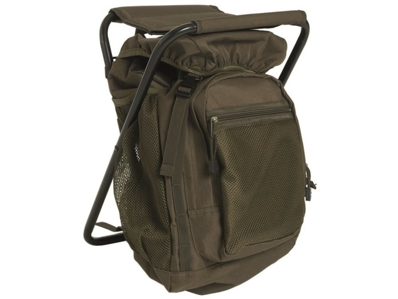 Mil-tec batoh se židlí je vhodný do přírody, na kempování, na rybaření, pro turistiku, cestování, nebo na chatu či chalupu. Díky dobré skladnosti a lehkosti je vhodný na delší cestu.nastavitelné ramenní popruhyhlavní prostorná kapsapřední kapsa na zippřední síťová kapsa2 postranní kapsy na zip se síťkouPoužití :Na běžné nošení, turistika, kempink, lov a pod.Rozměry:při složení 42 x 24 x 14 cmObjem:20 litrůHmotnost:1120 gmax. nosnost 120 kg židleMateriál:100% polyester, konstrukce hliníkováVýhody :Batoh střední velikosti, pevné šití, německý výrobce Miltec.