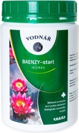 VODNÁŘ Baenzy štart do jazierka, 1kg.BAENZY prípravky obsahujúce baktérie a enzýmy pre nastavenie biorovnováhy. Baktérie sa zachytí na vhodných miestach v jazierku, kde sa rozmnožia. Vďaka svojmu množeniu a rastu spotrebúvajú organický materiál, ktorý mohol slúžiť na výžive a rastu rias.Baenzy je biologický prípravok pre nastavenie rovnováhy v novom jazierku a v jarných mesiacoch. Baktérie sa zachytí na vhodných miestach (filter, štrk atď.), Kde sa rozmnožia a spotrebúvajú organický materiál. Balenie na 50 m3.Vďaka rastu spotrebúvajú organický materiál a pri nasadení rýb a rastlín nie je voda nárazovo zaťažená. Následkom veľkého zaťaženia vody je možný kolaps biorovnováhy sprevádzaný fermentačnými procesmi, rastom rias a siníc.BAENZY - Štart pôsobí ako prevencia a udržuje zdravú biologickú rovnováhu v jazierku.použitie:.BAENZY - Štart rozmiešajte v nádobe s vodou z jazierka a aplikujte v celej ploche.Balenie je určené na jazero o objeme 50m3 vody.ilustračné foto.