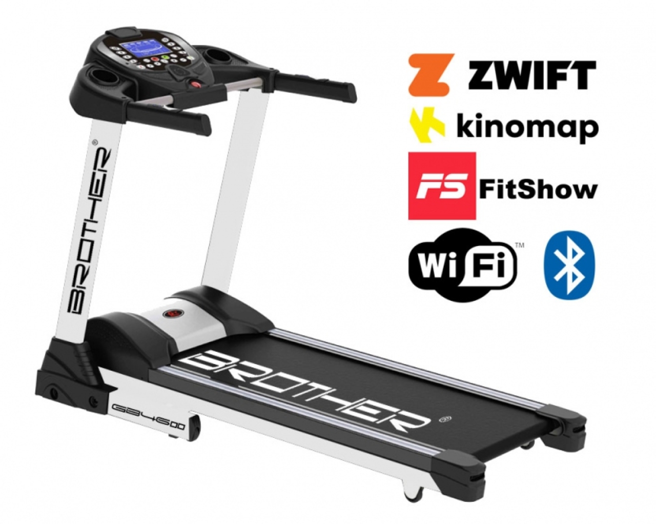 Jedná se o model běžeckého pásu, který byl v roce 2017 vyhodnocený nezávislým testem běžeckých pásů portálu Arecenze.cz jako nejlepší běžecký pás ve své kategorii v ČR a za roky 2018, 2019 jako nejlepší pás s poměrem CENA/VÝKON. Běžecký pás BROTHER GB4600BA s možností připojení běžeckých aplikací a případně našeho BT hrudního pásu GB03 pomocí Bluetooth. V tomto se výrazně odlišuje od jinak konstrukčně shodného stroje GB4600. Stroj disponuje stejně výkonným motorem a elektrickým náklonem jako GB4600. Běžecký pás GB4600BA má 7" LCD displej, ale nabízí možnost připojení chytrých telefonů nebo tabletů přes Bluetooth prostřednictvím aplikací v systému Android nebo iOS (Apple). Používané běžecké programy jako je Kinomap, Zwift, Fit Show a podobně - mobilní aplikace, které je možné si uložit do mobilního telefonu a následně jejich pomocí ovládat běžecký pás GB4600BA. Bluetooth připojení umožňuje ovládání pásu prostřednictvím dotykového displeje a využití běžeckých aplikací FitShow, Kinomap, Zwift a dalších aplikací pro lepší pocit při běhání. Běžecké aplikace mají mnoho různých nadstavbových funkcí pro použití běžeckého pásu - např. možnost uložení běžeckých tras, možnost navolení vlastních tras z Google Maps, pohled běžce při běhu z tzv. Street View, běžecký pás kopíruje pohybem profil a případné převýšení trasy. Návod na stažení běžeckých aplikací máme k dispozici. Základní parametry běžeckého pásu : možnost připojení běžeckých aplikací prostřednictvím tabletu nebo mobilního telefonu profi motor o výkonu 3 - 6 HP - 2 - 4,5 kW (maximální průtok el. proudu je 8,5 A). 6 HP je špičkový výkon při maximálním zatížení (maximální rychlost, hmotnost, náklon) - průměrná spotřeba elektřiny při běžných podmínkách běžného provozu a při hmotnosti mezi 70 - 80 kg a při dodržení pravidelné údržby je cca 1 kW/ 1 hod. POZOR - v této konfiguraci NEMÁ stroj funkci HRC ! Další parametry běžeckého pásu : Rychlost : 1 - 22 km/hod. Elektrický náklon 0 - 20 poloh (celkový max. náklon je 10 %) Rozměr běžecké plochy :136 x 50,5 cm Nosnost 150 kg 48 programů + 3 vlastní uživatelské + programy přes mobilní aplikace Displej 7" LCD - zobrazuje rychlost, čas, vzdálenost, tepovou frekvenci, úhel náklonu, orientačně kalorie, Body fat - množství tělesného tuku v těle Rukojeti na ovládacím panelu jsou opatřeny snímačem tepové frekvence. Dvouvrstvý odolný běhací pás s 8-mi bodovým odpružením + 2 speciální polyuretanové tlumící vložky pro pohodlný běh šetrný k dolním končetinám. Rám pásu, běhoun běžecké plochy a motor jsou natolik kvalitní, že na ně poskytujeme prodlouženou záruku 5 let GB4600 je velmi kvalitní výrobek nejen pro domácí použití, ale i pro použití v posilovnách a fitness centrech. Pás je dále vybavený bezpečnostní rychlobrzdou - pomocí bezpečnostního klíče, umožňující okamžité vypnutí v případě nutnosti. v průběhu běhání. 2 reproduktory, možnost připojení MP3, USB konektor, ventilátor s omezeným výkonem Popsané parametry představují běžecký pás jako velmi kvalitní výrobek, srovnatelný s mnohem dražšími konkurenčními výrobky. Běžecký pás má kolečka pro manipulaci, lze jej po použítí ve "skladovací a transportní poloze" celkem snadno přemisťovat. Na panelu s displejem jsou dvě odkládací schránky na lahev s pitím, případně na odložení hodinek, šperků a pod. Výrobek má certifikaci CE/ROHR dle EN957 určenou pro fitness stroje a zařízení. V případě potřeby je servis zajištěn bezplatným svozem k nám, pás opravíme a doručíme zpět. Doplňující údaje : rozměr výrobku: 182 x 84 x 132 cm, rozměr v přepravním obalu : 184 x 86 x 35 cm, půdorysný rozměr v transportní poloze 80 x 112 cm čistá hmotnost: 85 kg, hmotnost včetně obalu : 92 kg Zwift (Android 7.0+/ iOS 9.0+) a pomocná aplikace Zwift Companion (Android 7.0+/ iOS 9.0+) trénink formou hry ve 3D virtuálním prostředí nastavení cílů a vytvoření tréninkového plánu možnost komunikace s ostatními uživateli online vytvořte si vlastního avatara, který vás bude na obrazovce zastupovat aplikaci lze propojit s Apple Health, Strava, Training Peaks, Garmin Connect, Adidas Training, Map My Fitness, Today''s Plan Kinomap (Android 5.0+/ iOS 9.0+) přednastavené trasy, ze kterých je přehráváno reálné video při volbě typu stroje zvolte ikonku vašeho stroje a jako značku stroje vyberte Brother aplikace je zpoplatněná FitShow (Android 7.0+) / FitShow LITE (iOS 8.0+) SET A TARGET - pro cvičení na trenažéru Natural Scenery - simulace ubíhající krajiny Sports Course - vybrané cvičební programy z Youtube Program Mode - přednastavené programy volba cíle - vzdálenost, čas, spálené kalorie možnost tvorby vlastního programu doporučujeme vyzkoušet kompatibilitu aplikací s vaším mobilním zařízením předem pro správnou funkci aplikací mějte povolené a zapnuté WiFi (pro mobilní telefon nebo tablet), Bluetooth a GPS (určování polohy) ACRA není vývojářem zmíněných aplikací a nepřejímá zodpovědnost za případné chyby či nekompatibilitu aplikací (v případě problémů jsme však ochotni pomoct).
