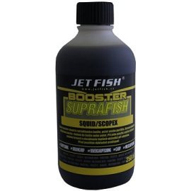 Booster – nová receptúra, ktorá funguje výborne v horúcej aj studenej vode, určený pre zvýšenie atraktívnosti boilies, peliet, rôznych zmesí a method mixov.Spoločnosť Jet Fish prináša na trh úplne nové boostery, ktorých vývoj trval niekoľko rokov. Pripravila pre Vás zmes tých najlepších tekutých potráv, ktorá obsahuje základné aminokyseliny a fermentované cukry. Boostery sú navyše doplnené o lákadlá, čo zaisťuje ich lepšiu účinnosť. Inovované boostery výrazne zvýšia záujem kaprov o Vašu návnadu a môžete ich používať počas celého roku.Hlavné prednosti boosterov Jet FishZaručene zvýšia záujem rýbObsahujú lákadláObsahujú základné aminokyseliny a fermentované cukryVýsledok niekoľkoročného vývoja.