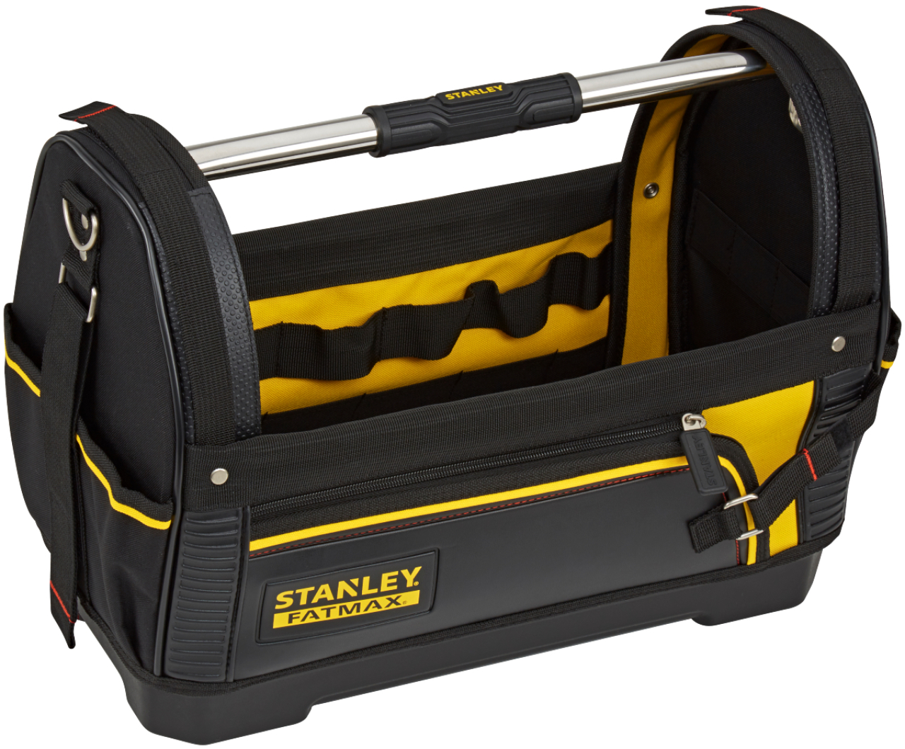 Vyrobeno z pevné a odolné tkaniny Pevné voděodolné plastové dno Ergonomické pryžové opláštění tyčového držadla Rozměrná konstrukce umožňující snadný přístup k obsahu Pohodlný ramenní popruh s polstrováním Rohy a hrany zesílené kovovými pásky krytými kůží Vnitřní pružná oka pro uložení nářadí Poutka ...viac