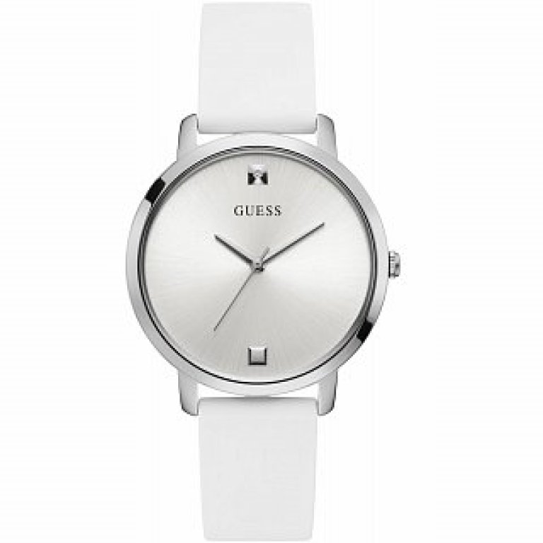 Módne hodinky Guess z kolekcie Nova. Ideálny doplnok pre ženy uprednostňujúci analógové a guľaté hodinky. K ich skrášleniu naviac výrobca zvolil diamant. Vo vnútri odolného, 9 mm vysokého púzdra, ktoré tvorí kvalitný oceľ nájdete spoľahlivý batériový (quartz) strojček poháňajúci v priemere 40 mm široký ciferník. Ten spoľahlivo chráni odolné minerálne sklíčko. Ako sami vidíte, púzdro zahalila strieborná, ciferník strieborná a remienok biela farba. Z hľadiska materiálu vedie silikón a jeho dĺžku, v tomto prípade 190 mm si môžete ľahko upraviť na obvod svojho zápästia. Tieto hodinky disponujú stupňom vodotesnosti 3 ATM.Exkluzívne vydanie nového Brastymagu. Sťahuj zadarmo.
