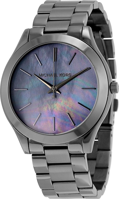 Módne hodinky Michael Kors z kolekcie Slim Runway. Ideálny doplnok pre ženy uprednostňujúci analógové a guľaté hodinky. K ich skrášleniu naviac výrobca zvolil. Vo vnútri odolného, 8 mm vysokého púzdra, ktoré tvorí kvalitný oceľ nájdete spoľahlivý batériový (quartz) strojček poháňajúci v priemere široký ciferník. Ten spoľahlivo chráni odolné minerálne sklíčko. Ako sami vidíte, púzdro zahalila čierná gunmetal, ciferník perleťová a remienok čierná gunmetal farba. Z hľadiska materiálu vedie oceľ a jeho dĺžku, v tomto prípade 200 mm si môžete ľahko upraviť na obvod svojho zápästia. Tieto hodinky disponujú stupňom vodotesnosti 50 M.