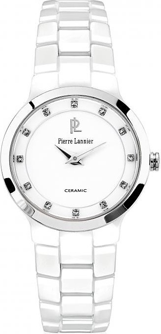 Dámske hodinky - vodotesnosť 3 ATM.Krásne luxusné hodinky značky Pierre Lannier z bielej keramiky as ciferníkom s kamienkami budú dokonalou ozdobou na vašej ruke.Luxusné dámske analógové hodinky značky Pierre Lannier budú dokonalým doplnkom pri každej príležitosti. Elegantný a decentný dizajn vytvárajú biely remienok z keramiky a biely ciferník s kamienkami. Navyše sú vodoodolné. Doprajte sebe alebo niekomu blízkemu tieto jedinečné a štýlové hodinky.Prečo si tieto hodinky obľúbite? kvalitný výrobok francúzskej značky Pierre Lannierelegantný dizajnremienok z bielej keramikybiely ciferník s kamienkamivodoodolné.