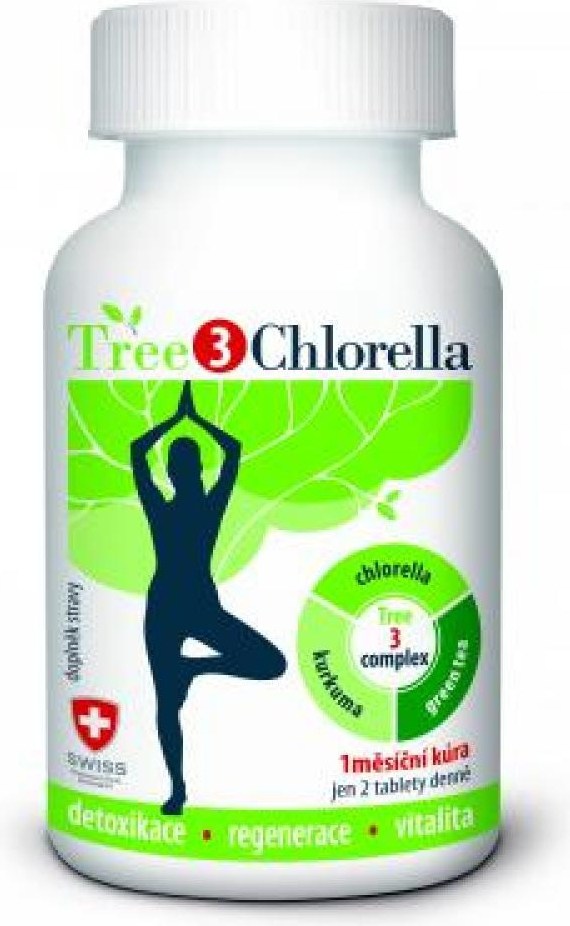 Tree3Chlorella pro správnou detoxikaci organizmu.Doplněk stravy Tree3Chlorella pomáhá díky biomase chlorelly dlouhodobě vyčistit a zregenerovat organizmus a zároveň podporuje imunitní systém. Přípravek obsahuje unikátní kombinaci látek pro správnou detoxikaci organizmu.Tree3Chlorella obsahuje unikátní Tree3 complex jenž díky biomase chlorelly pomáhá odstranit škodlivé látky a zregenerovat a posílit vitalitu organizmu. V Tree3 complexu se vzájemně doplňují velmi cenné a tradiční přírodní složky (CHLORELLA, GREEN TEA, KURKUMIN).Díky biomase chlorelly Tree3Chlorella:.pomáhá odstranit z těla škodlivé látky a těžké kovy pro zdravou funkci organizmu.podporuje vitalitu organizmu a imunitní systém pro zdravý životní styl.užívají se pouze 2 tablety denně pro pohodlné užívání.Chlorella je jednobuněčná, mikroskopická řasa, která je tradičním očistným a posilujícím přírodním prostředkem. Je přírodním a komplexním zdrojem všech esenciálních živin, vitaminů, minerálů a stopových prvků. Pomáhá odstartovat proces načerpání vitality a následně kvalitní regeneraci buněk v organizmu. Navíc jsou její buněčné stěny speciálním technologickým postupem roztříštěny na aktivní mikroskopické fragmenty, které na sebe dokážou vázat a z organismu eliminovat škodlivé látky a těžké kovy. Má blahodárný vliv na orgány, které mají schopnost se detoxikovat – tj. funkci žlučníku, jater a ledvin. Mimo jiné podporuje trávicí systém.Green Tea je extrahován z nejkvalitnějších listů a pupenů čajovníků (Camellia sinensis), je tradičním stimulujícím přírodním prostředkem. Má antioxidační účinky a vhodně tak doplňuje účinky chlorelly.Kurkumin je extrahován z kořene kurkumy dlouhé (Curcuma longa) a je tradičním přírodním prostředkem s antioxidačními účinky a pomáhá snížit oxidativní stres.Složení:.Biomasa chlorelly, extrakt zeleného čaje, extrakt kurkumy.Dávkování:.Užívejte pravidelně 2 tablety denně, pro dosažení rychlejšího nástupu účinku užívejte 1 – 2 týdny až 4 tablety denně. Přípravek je vhodné užívat dlouhodobě. Je vhodný pro diabetiky a celiatiky. V doporučené denní dávce 2 tablet denně mohou užívat i kojící ženy. Dodržujte zásady zdravé výživy a životosprávy.Upozornění:.Nepřekračujte doporučené denní dávkování. Ukládat mimo dosah dětí! Výrobek není určen pro děti do tří let. Není určeno jako náhrada pestré stravy. Neužívat v případě alergie na některou z obsažených složek. Užívání v těhotenství zkonzultujte s lékařem nebo lékárníkem. Skladujte v suchu a temnu při teplotě 15–25 °C. Chraňte před přímým slunečním zářením a vlhkem.V naší nabídce naleznete také další přípravky určené pro správnou detoxikaci organizmu.Informace o značce Simply You.Společnost Simply You Pharmaceuticals, a. s. přináší na globální lékárenský trh moderní farmaceutické a parafarmaceutické produkty, které se vyznačují vysokou kvalitou, účinností a konkurenceschopnou cenou. Odborné zázemí společnosti Simply You Pharmaceuticals, a. s. tvoří zkušení manažeři a specialisté v oboru. Společnost spolupracuje s externími odborníky – lékaři, kteří rovněž často působí jako aktivní garanti některých přípravků. Výrobky uváděné na trh společností Simply You Pharmaceuticals, a. s. jsou schváleny příslušnými státními orgány. Cílem společnosti je přinášet na trh vysoce kvalitní a účinné výrobky podpořené profesionálním informačním servisem poskytovaným nejen lékařům, odborníkům, specialistům v lékárnách, ale především konečným zákazníkům, kteří chtějí o své zdraví aktivně pečovat. Toho lze dosáhnout jen díky nejmodernějším technologiím, efektivní výrobě a v neposlední řadě také díky svědomité práci všech zaměstnanců. Součástí strategie společnosti SIMPLY YOU je i příprava nových přípravků a jejich uvedení na trh.