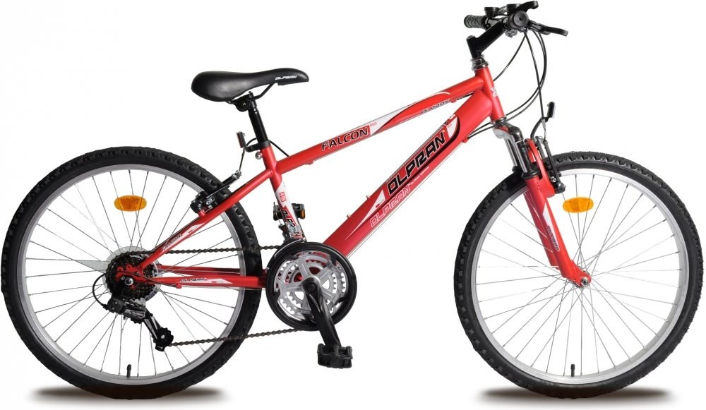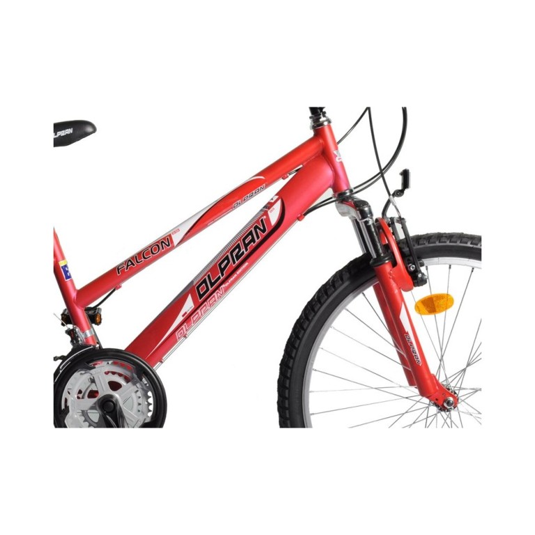 Detský bicykel 24" – vhodný pre deti od 7 do 11 rokov, odporúčaná výška postavy 127-142cm, priemer kolies 24", oceľový rám, odpružená vidlica, brzdy V- brake, počet prevodov 18, hmotnosť 14kg.Priemer kolesa:24"Rám:OceľovýVidlica:OdpruženáBrzdy:V-brakePrehadzovačka:Shimano RD-TY21-GSPrešmykač:QD-04AKľučky/prevodníky:48-38-28/150 mmKazeta:Shimano MF-TZ20Plášte:RubenaHmotnosť kolesa:14 kgBicykel napomáha v detstve pri vytváraní nezabudnuteľných spomienok, ku ktorým sa neustále vraciame. Či už ide o prvé odvezenie, prvú hodinu jazdy alebo vzrušujúce zážitky spojené s jazdou na bicykli. Preto je tu detský bicykel od Olpran v peknej červenej farbe. Ide o horský bicykel v chlapčenskom vyhotovení, vhodný pre deti od 7 do 11 rokov, ktoré sú vysoké medzi 127 cm a 142 cm. Bicykel má nosnosť 90 kg a rám je vyrobený z ocele, meria 13" a váži 14 kg, takže vydrží aj občasné nešetrné zaobchádzanie či dobrodružné výpravy. Bicykel je vhodný do mierneho terénu a na spevnené cesty.