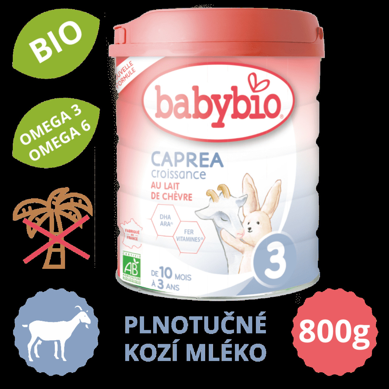 Kojenecké mléko batolecí, vhodné pro děti od 10 měsíců, bez konzervantů a umělých barviv, s kozím mlékem, přidané vitamíny a minerály, bez přidaného cukru, bio kvalita a bez palmového oleje Hledáte kvalitní pokračovací mléko pro své dítě, kterým byste doplnili jeho stravu? BABYBIO CAPREA 3 Kozí mléko představuje pokračovací mléčnou kojeneckou výživu určenou pro děti od ukončeného 10. měsíce. Obsahuje sušené plnotučné kozí mléko v bio kvalitě a vyvážený poměr bílkovin, esenciálních mastných kyselin, vitamínů a minerálů, které podporují správný vývoj dítěte. V kojeneckém mléku od BABYBIO se nenachází palmový olej, přidaný cukr či GMO a jeho receptura splňuje nařízení EU platné od 22. 2. 2020 (regule 2016/127). Lahodná přirozeně nasládlá chuť mléka vašemu dítěti zachutná. Klíčové vlastnosti kojeneckého mléka BABYBIO CAPREA 3 kozí mléko, 800 g Pokračovací mléčná kojenecká.