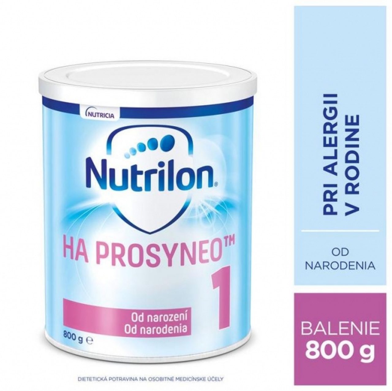 Nutrilon 1 HA Prosyneo je dietetická potravina pro zvláštní lékařské účely vhodná pro výživu kojenců od narození, pokud nemohou být kojeni. Určeno k dietnímu postupu při snižování rizika vzniku alergie na bílkovinu kravského mléka.
