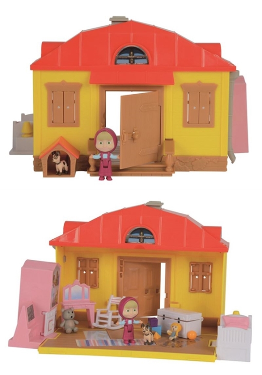 Barevný rozkládací domek z oblíbeného dětského seriálu "Máša a medvěd" s Mášou, psí boudou a pejskem čeká na holčičky od 3 let. Domeček si mohou nejdříve složit a pak ho pěkně vybavit doplňky dodávanými v balení.Obsah balení:.