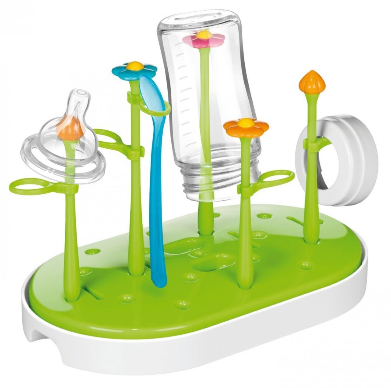 Praktická souprava pro odkapávání a sušení kojeneckých láhví, dudlíků, misek, hrníčků, dětských lžiček apod.Souprava obsahuje 8 odkládacích květinek, 6 závěsných lístků, stojánek a odnímatelný podnos pro snadné čištění.Vyrobeno z prvotřídního odolného plastu, vhodné do myčky.Perfektně skladné.3 roky záruka.Není určeno jako hračka pro děti.