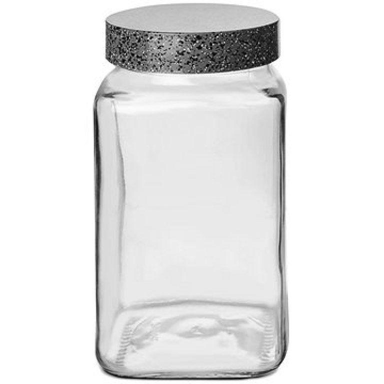 Hranatá dóza z čirého skla se u vás v kuchyni rozhodně neztratí. Bude se hodit na oříšky, semínka a při troše fantazie ji můžete využít třeba i jako květináč.