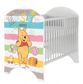 Dětská postýlka Disney 120x60cm. Postýlka je vyrobena z MDF desek v barvě norské borovice,boční příčky jsou z borovice lakované v bílé transparentní barvě. Transparentní barva je nezávádná a vhodná pro výrobu dětského nábytku, zároveň udržuje a zdůrazňuje přirozený půvab dřeva. Postýlka má 2 vyjimatelné příčky, které se dají odstranit - praktické. Dno postýlky ja nastavitelné do 3 poloh - správná pozice se nastavuje dle dítěte: 1. úroveň - nejvyšší - je určena pro děti, které jen leží - tedy pro novorozence. 2. úroveň - uprostřed - je určena pro děti, které se už dokáží posadi - sedí. 3. úroveň - nejnižší - je určena pro děti, které se už staví. Rozměry: Vnitřní rozměry: 120 cm x 60 cm. Vnější rozměry: 124 cm x 64,5 cm x 99 cm. Hrany dětské postýlky jsou zaoblené a potažené měkčeným nezávadný PVC. Přední čelo je barevně potištěno, k tisku byly použity ekologické barvy, které jsou vhodné pro malby/tisk na dětský nábytek. Potisk je navíc zafixován speciálním laminátem, aby obrázek neblednul a neztrácel barvy. Obrázek lze bez obav obtírat vlhkým hadříkem. 1. jakost. Matrace není součástí, v nabídce eshopu si v případě zájmu vyberte matraci, která Vám nejvíce vyhovuje.