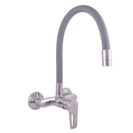 Páková nástěnná DŘEZOVÁ BATERIE se silikonovým ramínkem. V barevném provedení šedá/chrom Rozteč baterie 150 mm.