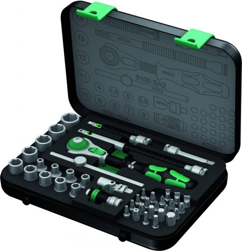 Zyklop "6 v 1" Wera ráčna Zyklop nahrazuje až 5 různých typů ráčen a navíc je možné je použít jako šroubovák. 1. Ráčna s jemným ozubením 2. Flexibilní ráčna 3. Úhlová ráčna 4. Rychlonastavitelná ráčna 5. Silová ráčna 6. Šroubovák Konstrukce Zyklop ráčen urychluje proces šroubování. Rotační systém držáku s volnoběžným mechanismem umožňuje rychlou montáž. Zvláště tehdy, pokud ještě není závit ráčny přesně umístěn. Jemně ozubená ráčna (72 zubů) má úhel zpětného zaskočení jen 5°. Rychlá a precizní práce při jakékoliv montáži. Aretační kulička zajišťuje bezpečné dosednutí hlavy ráčny. Krátkým stisknutím tlačítka jednoduše uvolníte nástroj. Ráčnu lze použít i v 90° poloze. Volně výkyvná hlava ráčny s přepínáním pro levý a pravý chod. Bezproblémová práce je umožněna i v úzkých nebo těžko dostupných prostorech. Definovaná poloha při 0°, 15° a 90° doleva a doprava zajišťuje bezpečnou práci bez sklouznutí hlavy ráčny. Všechny Zyklop ráčny jsou vybaveny přepínacím kolečkem, které umožňuje rychlé a jednoduché přepnutí na levý/pravý chod. Žádná zdlouhavá manipulace. Ráčnu také můžete použít jako šroubovák, pokud je přidán adaptér pro bity. Hlava ráčny je dokonale ergonomicky tvarovaná. Ideálně tvarovaná rukojeť Kraftform snižuje nebezpečí poranění. Rukojeť je vyrobena z materiálu, který zabraňuje přilnutí k pokožce. Měkčí zóny umožňují zvláště vysoký přenos sil. Kulatý úchyt umožňuje rychlý návrat do výchozí polohy. Volnoběžný mechanismus pro bleskurychlé dotahování a uvolňování šroubů a matic. Hlava ráčny univerzálně použitelná. Sada ráčen Zyklop je umístěna v pevném kovovém kufru s protiskluzovými gumičkami. Nářadí je bezpečně uloženo díky molitanové výplni. Molitanovou výplň lze také jednoduše odstranit. Veškeré nářadí má své místo díky přesně tvarované molitanové výplni.Technické parametryHodnotaRozměr, délka225Rozměry(d x š x v) 225 x 162 mm x 50 mm mmHmotnost1333 gRozměr, výška50 mmRozměr, šířka162 mmObsah1 kusVlastnostiZyklop "6 v 1"Wera ráčna Zyklop nahrazuje až 5 různých typů ráčen a navíc je možné je použít jako šroubovák.1. Ráčna s jemným ozubením2. Flexibilní ráčna3. Úhlová ráčna4. Rychlonastavitelná ráčna5. Silová ráčna6. ŠroubovákKonstrukce Zyklop ráčen urychluje proces šroubování. Rotační systém držáku s volnoběžným mechanismem umožňuje rychlou montáž. Zvláště tehdy, pokud ještě není závit ráčny přesně umístěn.Jemně ozubená ráčna (72 zubů) má úhel zpětného zaskočení jen 5°. Rychlá a precizní práce při jakékoliv montáži.Aretační kulička zajišťuje bezpečné dosednutí hlavy ráčny. Krátkým stisknutím tlačítka jednoduše uvolníte nástroj. Ráčnu lze použít i v 90° poloze.Volně výkyvná hlava ráčny s přepínáním pro levý a pravý chod. Bezproblémová práce je umožněna i v úzkých nebo těžko dostupných prostorech. Definovaná poloha při 0°, 15° a 90° doleva a doprava zajišťuje bezpečnou práci bez sklouznutí hlavy ráčny.Všechny Zyklop ráčny jsou vybaveny přepínacím kolečkem, které umožňuje rychlé a jednoduché přepnutí na levý/pravý chod. Žádná zdlouhavá manipulace.Ráčnu také můžete použít jako šroubovák, pokud je přidán adaptér pro bity.Hlava ráčny je dokonale ergonomicky tvarovaná.Ideálně tvarovaná rukojeť Kraftform snižuje nebezpečí poranění. Rukojeť je vyrobena z materiálu, který zabraňuje přilnutí k pokožce. Měkčí zóny umožňují zvláště vysoký přenos sil. Kulatý úchyt umožňuje rychlý návrat do výchozí polohy.Volnoběžný mechanismus pro bleskurychlé dotahování a uvolňování šroubů a matic.Hlava ráčny univerzálně použitelná.Sada ráčen Zyklop je umístěna v pevném kovovém kufru s protiskluzovými gumičkami. Nářadí je bezpečně uloženo díky molitanové výplni. Molitanovou výplň lze také jednoduše odstranit. Veškeré nářadí má své místo díky přesně tvarované molitanové výplni.Obsah baleníSada bitů s ráčnou 1/4" Wera 8100 SA, metrická, 42dílná v pevném kovovém kufru.