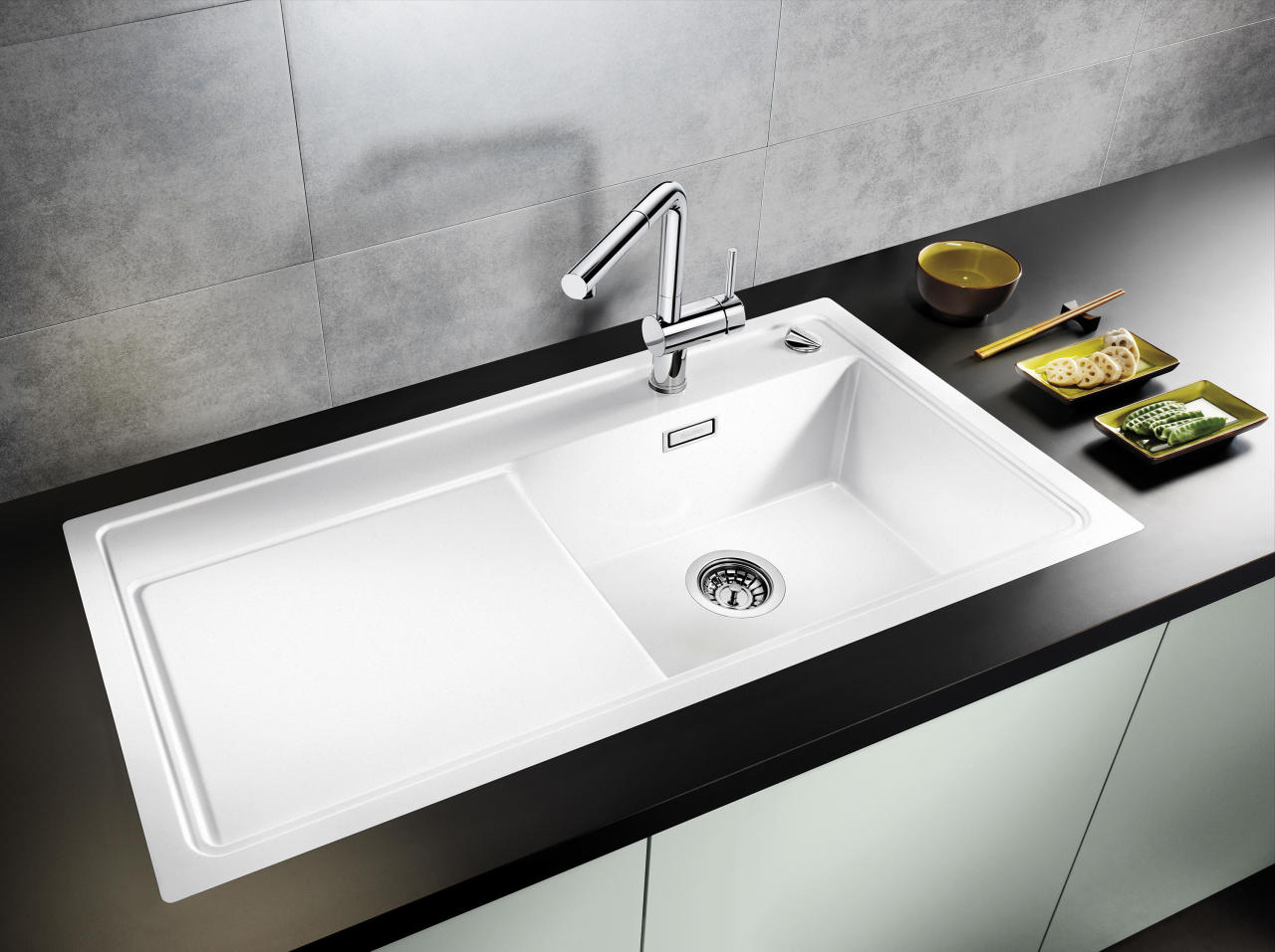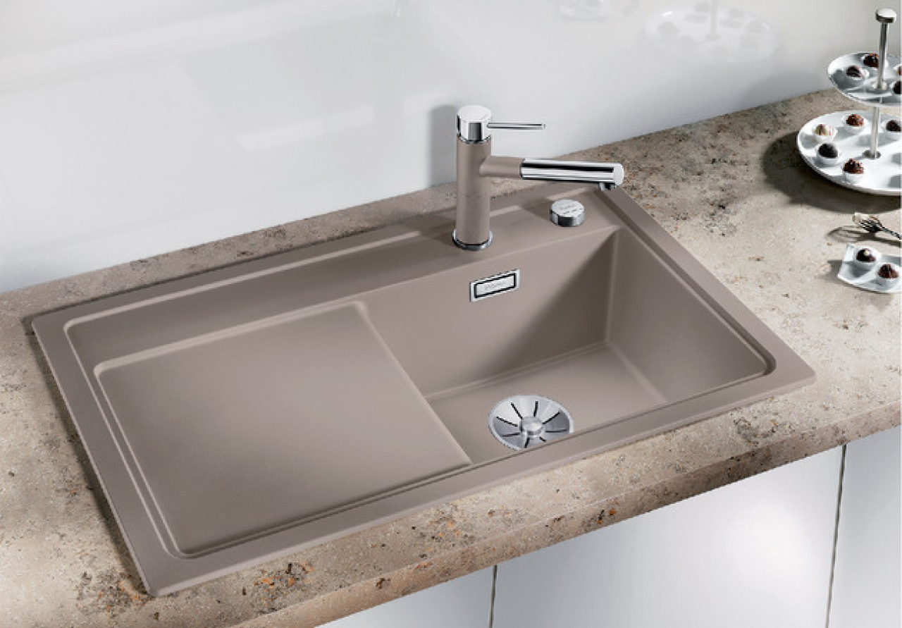 Rozměry: 860 x 510 mm.Výřez: 840 x 490 mm.Hloubka dřezu: 190 mm.V dodávce: Odtoková armatura, 3 ½".Nadčasová estetika s moderními funkcemi.mimořádně velká vanička, prostorná odkapávací plocha.velký prostor pro baterii nabízí mnoho místa.funkční rovina podél celého dřezu.příslušenství jako podél celého dřezu posuvná deska na krájení,.volně položitelná funkční miska atd.plochý okraj.SILGRANIT.je vlastně umělý kámen – téměř 80% drceného křemene spojeného akrylátovou pryskyřicí. Výsledkem je materiál vysoké tvrdosti, odolný proti poškrábání, proti všem v domácnosti používaným chemikáliím, proti teplotám do 240°C.Čištění je opět snadné – po skončení práce u dřezu jej důkladně opláchnout a otřít dosucha. Pro důkladnější čištění lze použít čisticí prostředky běžně dostupné na trhu včetně lehce abrasivních. Důležité je nedopustit usazování vodního kamene. V jeho vrstvičce, která je porézní (tedy nikoli v materiálu samotného dřezu), se zachytávají částečky nečistoty a přírodních barviv, např. z kávy, čaje, ovoce apod. a tvoří nežádoucí skvrny. Na vodní kámen existují speciální čisticí prostředky, lze použít i běžný ocet.Pozor! Do dřezů ze SILGRANITu nepoužívejte gumové podložky na dno; změkčovadla, která guma obsahuje, by mohla poškodit povrch dřezu.Ve skříňce pod dřezem neskladujte průmyslové chemikálie, např. ředidla.SILGRANIT PuraDur (u vybraných modelů).Dřezy z materiálu SILGRANIT PuraDur. Jedinečné údržbové vlastnosti spočívají v materiálu samotném.Aktivní látky odpuzující vodu se čištěním dostávají stále znovu na povrch. Tam vytvářejí ochrannou vrstvu a zaručují trvalou odolnost proti usazování vodního kamene a tvorbě skvrn. Údržba se tedy provádí příslovečným obratem ruky – jednoduše vlhkou houbou.SILGRANIT CLEAN (u vybraných modelů).Skládá se z nejtvrdších součástí přírodní žuly, které dodávají dřezu mimořádnou tvrdost a odolnost vůči poškrábání.Zdokonalená receptura výchozích surovin umožňuje ještě příjemnější čištění.K pravidelnému ošetřování a odstraňování oděru způsobeného nádobami se hodí zejména prostředek BLANCOCLEAN optimálně přizpůsobený materiálu SILGRANIT CLEAN. Pevně usazené nečistoty lze odstranit přípravkem BLANCOACTIV zcela jednoduše a beze zbytků.BLANCO patří mezi vedoucí výrobce mycích center mezinárodního významu.Firma BLANCO byla založena v roce 1925 a všechny svoje 80-leté zkušenosti vložila do oblasti inovací.Spolehlivost firmy patřící do oblasti vysoce výkonných firem střední velikosti ve spojení se skupinou E.G.O.Nejvyšší kvalita: intenzívní výzkum a certifikovaná kvalita zaručují nejvyšší standardy v oblasti použitého materiálu a jeho zpracování.Příslušná kompetence pro přínos v oblasti renomovaného designu byla oceněna četnými cenami za design výrobků.Optimální využití prostoru pro větší pohodlí.Firma BLANCO poskytuje řešení pro jakoukoli velikost spodní skříňky. Skříňky šířky 60 cm jsou vhodné zejména pro dřezy s velkým hlavním dřezem a malou vaničkou. Ale i v případě jiných prostorových podmínek pro Vás Blanco najde to nejvhodnější řešení. Široká nabídka modelů pro rohové, úzké nebo široké spodní skříňky stejně jako prostor pod oknem poskytuje možnost smysluplného rozvržení prostoru.S ergonomií a funkčností jde všechno snáze.Vyřídit všechno jednou operací mytí, to není s výrobkem BLANCO žádný problém: hlavní dřezy a malé vaničky stejně jako příslušenství jsou vzájemně tak sladěny, že umožňují plynulé pracovní postupy. Komfortní řešení – např. koncepce AX – šetří zbytečné pracovní úkony a zajišťují tak efektivní práci ve Vaší kuchyni.Snadná údržba.Speciální materiály, které se snadno udržují a promyšlené povrchové úpravy Blanco EasyCare minimalizují časové nároky na údržbu mycího centra: nečistoty a voda se na povrchu téměř neudrží a stopy po používání jsou rychle odstraněny. Speciální čistící prostředky usnadňují údržbu a zachovávají pěkný vnější vzhled.Komfort daný systémem.Teprve dokonalá souhra všech prvků udělá z dřezu funkční mycí centrum. K tomuto účelu slouží vhodné baterie, organizační a košové systémy třídění odpadu stejně jako přesně přizpůsobené příslušenství. Excentrické ovládání výpusti a praktické malé vaničky patří u firmy Blanco ve většině případů do základního vybavení.Sladění materiálů a barev.Ve většině případů až správná kombinace dřezu a baterie vytváří prostředí, které odpovídá požadovanému životnímu stylu bydlení. Firma BLANCO poskytuje široký prostor pro inspiraci. Široká nabídka používaných materiálů jako nerez, robustní kompozitní materiál SILGRANITh nebo vysoce kvalitní keramika stejně jako široká paleta atraktivních barev nabízejí takřka neomezené možnosti.Vhodný způsob zabudování pro jakýkoliv požadavek.BLANCO nabízí vhodný způsob zabudování pro každé plánování. Dřezy pod pracovní desku a dřezy zabudované do roviny s pracovní deskou zaručují přitom dokonalý vnější vzhled. Mimořádná výhoda modulových dřezů spočívá v nekomplikovaném položení přímo na korpus skříňky, což šetří drahý materiál pracovní desky a vyřezávání. Dřez se vždycky optimálně začlení a poskytne zajímavý vzhled.