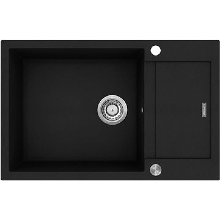 Granitový dřez – obdélníkový tvar, jednodřezový, s odkapem, granitový materiál, oboustranná orientace dřezu, sítková výpusť, černá barva, celkové rozměry dřezu: 50 cm × 78 cm × 30,6 cm (D׊×H), rozměry vany: 43,6 cm × 48 cm × 20 cm (D׊×H) Hledáte do své domácnosti kvalitní a designově provedený dřez? Concept DG05L60bc by pro vás mohl být to pravé! Vyroben je z velmi pevného materiálu, který obsahuje 80 % drcené žulové a křemičité směsi a 20 % pryskyřicového pojiva s barvivem. Designová řada LINEA vkusně doplní jakýkoliv interiér. Dřez Concept disponuje PUSH-IN ovládáním, které vám zajistí hygienický způsob čištění, aniž byste museli dávat ruce do dřezu. Montáž dřezu je opravdu snadná díky předvrtaným otvorům. U dřezu oceníte také praktický odkládací prostor. Kvalitní zpracováníPUSH-IN ovládáníFlexibilní využití Klíčové vlastnosti granitového dřezu Concept DG05L60bcGranitový dřez Concept z designové řady LINEAPraktické.