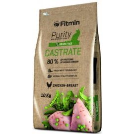 FITMIN CAT Purity Castrate 1,5 kg - Kompletné krmivo pre dospelých a kastrované mačky. - Kulinársky zážitok pre Vašu mačku. To je krmivo Fitmin cat Purity Castrate. Nájdete v ňom čerstvé kuracie mäso, bylinky na podporu vitality organizmu, ovocie i zeleninu. Nielenže uspokojíte maškrtné jazýčky Vašich mačiek, ale zároveň im poskytnete prvotriednu kvalitu Fitmin cat Purity Castrate je tzv. Grainfree krmivo, to znamená, že je bezlepkové a znižuje potencionálne riziko výskytu alergických reakcií (napr. Na pšeničný lepok a kukuričný glutén). Krmivo je svojím unikátnym zložením ideálne pre kastrované mačky. Vďaka nemu bude mačka vo vynikajúcej kondícii, v neposlednom rade má krmivo dôležitú detoxikačnú funkciu vďaka bylinné zmesi, ktorá má však aj mnoho ďalších blahodarných účinkov. Krmivá sú vyrábané najmodernejšími technológiami, sú vyvážená, obsahujú vysoký podiel živočíšnych zložiek a mnoho ďalších benefitov najmä komplex dentálnej starostlivosti, prebiotiká, cheláty a ďalšie a ďalšie.Benefity.. 80% proteínov živočíšneho pôvodu.. Grain free receptúra.. Herbs Vitality komplex.. Fresh meat technology - čerstvé mäso bez kosti, je zárukou vysokej chutnosti a hlavne kvality našich produktov.. Kuracie mäso - je ľahké, chutné a veľmi dobre stráviteľné.. Púpava list - povzbudzuje činnosť tráviacich orgánov, zvyšuje tvorbu a vylučovanie žlče pri žalúdočných poruchách. Zlepšuje chuť do jedla, pôsobí na tvorbu žalúdočných kyselín a priaznivo ovplyvňuje činnosť pečene a obličiek.. Čierne ríbezle - má pozitívny vplyv na proces spomaľujúce starnutie, posilňuje obranyschopnosť organizmu a pozitívne pôsobí na elastickosť ciev.. Pestrec - má antioxidačné vlastnosti, podporuje rast pečeňových buniek, priaznivo ovplyvňuje funkciu pečene a chráni ich pred toxínmi.Zloženie mäso (27,5% kuracie mäso čerstvé, 30,5% kuracie mäso sušené, 6% morčacie mäso sušené, 4% bravčová pečeň), farmárske zemiaky, hrášok, repná vláknina, hydinový tuk, lucerna 2,5%, jablká, slepačie vajcia, pivovarské kvasnice, inaktivované kvasinky rodu Saccharomyces cerevisiae, ľanové semienko, čierne ríbezle 1%, bylinný komplex (lístky žihľavy dvojdomej, lístky púpavy lekárskej 0,25%, kvety rumančeka pravého, lístky medovky lekárskej, kvety lipy srdcovité), za studena lisovaný olej z nórskych lososov, minerálne látky, koreň čakanky, pestrec mariánsky 0,1%, sladkovodná riasa Chlorella, juka shidigera, komplex prírodných antioxidantov pre obnovu buniek.Obsah dopl.látek / 1kg stopové prvky: železo 214 mg (doplnené chelát železa a aminokyselín n-hydrátom), meď 22 mg (doplnené chelát medi a aminokyselín n-hydrátom), mangán 47 mg (doplnené chelát mangánu a aminokyselín n-hydrátom), zinok 155 mg (doplnené chelát zinku a aminokyselín n-hydrátom), selén 0,4 mg (doplnené organickú formou selénu produkovanou Saccharomyces cerevisiae CNCM I-3060), jód 2,6 mg (doplnené jodičnanom vápenatým bezvodým); vitamíny, provitamíny a chemicky definované látky s podobnými účinkami: vit. A 22000 mj, vit. D3 1260 mj, vit. E (RRR-alfa-tokoferol) 265 mg, vit B1 13,5 mg, vit B2 28 mg, vit B6 15 mg, vit B12 100 mikrogramov, vit. C 220 mg, niacinamid 126 mg, pantothenan vápenatý 44 mg, kyselina listová 4,7 mg, biotín 1,2 mg, cholinchlorid 2650 mg, taurín 1320 mg, L-karnitín 100 mg; aminokyseliny: DL-metionín 7058 mg, antioxidanty, konzervanty.Analytické zložky hrubý proteín 35%, oleje a tuky 12%, vláknina 3,5%, popol 7,4%, vápnik 1,1%, fosfor 0,83%, sodík 0,33%.