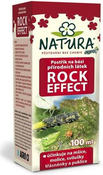 Unikátní BIO koncentrát na bázi přírodních látek pro zvýšení odolnosti a obranyschopnosti rostlin proti škůdcům (s insekticidními účinky). Rock effect je jedinečný výrobek na našem trhu,na přírodní bázi,který účinkuje proti škůdcům a americkému padlí. Přípravek účinkuje na mšice,molice,svilušky,třásněnky,červce - puklice ( v raném stádiu ) a na americké padlí na angreštu a rybízu. Má kontaktní účinek s protipožerovým efektem ( tzn.,že rostliny škůdcům nechutnají). - unikátní koncentrát na bázi přírodních látek s insekticidními účinky - účinkuje na mšice, molice, svilušky, třásněnky, červce – puklice – včetně jejich přezimujících stadií, na korovnici - kontaktní účinek s protipožerovým efektem (rostliny škůdcům nechutnají) - pro papriky, rajčata, okurky, tykve, bob, jádroviny, peckoviny, okrasné rostliny, bylinky, angrešt, rybíz, vinnou révu, jehličnaté dřeviny a chmel - neškodí užitečným organismům - vhodný pro ekologické zemědělství - ochranná lhůta 1 den - aplikace postřikem (odměrka pro snadné dávkování) - 1 balení na cca 3,3 - 5 l aplikační kapaliny (33 - 50 m2).