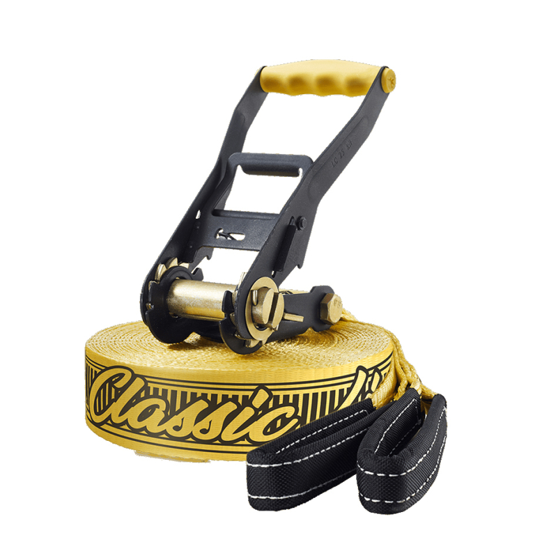 Velmi silný a statický popruh Classic Line pro každého. Dokonalý víceúčelový set vhodný jak pro rodinu, tak i pro pokročilé slacklinery. Set prodáváme ve dvou variantách 15 m nebo 25 m, což je délka, která neomrzí ani nejnáročnější. Lety ověřený tradiční produkt výrobce Gibbon, který určuje směr a trendy ve slakliningu. Radost z balancování, jednoduchost celého systému, nekonečná zábava na zahradu i do parku nebo tréninkový doplněk. To vše ve dvou kusech (lajna a ráčna) vždy připravené a sbalené na cestu. Celý set napnete i povolíte během 5 minut. Výrobek s certifikátem od TÜV. Z bezpečnostního hlediska nedoporučujeme používat napnutý popruh výše než 50 cm nad zemí. Set obsahuje: - 12,5 m dlouhý popruh s našitým okem pro snadné upevnění - 2,5 m dlouhý popruh s okem přidělaný k ráčně - ráčnu s bezpečnostní pojistkou a pohodlným madlem - ochranu stromů TREEWEAR - ochranu ráčny RAT PAD - návod k použití Technická data: - k dispozici jako set s popruhem dlouhým 15 m nebo 25 m - šíře popruhu 50 mm pro použití nízko nad zemí a pro bezpečné balancování - maximální nosnost: 4000 kg (40 kN) - dvoudílný set pro rychlou instalaci a demontáž - včetně návodu a praktické ochrany ráčny Rat Pad - šířka popruhu: 5 cm - 2 inch - délka kompletního setu: 15 m - napínání: ráčna - barva: žlutá - hmotnost: 2,9 kg Gibbon CLASSIC LINE je především díky tloušťce popruhu vhodný i pro freestyle in-line a skateboard. Je možný využít jako přenosné zábradlí na nejrůznější slidy i jiné triky. Upozornění: Šetřte naše stromy a vždy používejte ochranu kůry stromů. Uděláte radost nejen přírodě, ale i vám samotným, jelikož ochrana rovněž zvyšuje životnost popruhů.