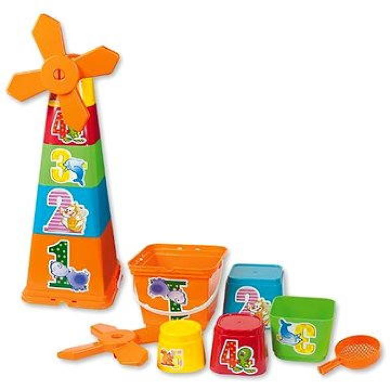 Sada na písek 7dílná Sedmi-dílná sada na písek Androni je přáním každého dítěte. Sada na písek jen perfektním společníkem, se kterým vaše děti budou rádi trávit každičký svůj čas.Sedmi-dílná sada na písek Androni je přáním každého dítěte. Sada na písek jen perfektním společníkem, se kterým vaše děti budou rádi trávit každičký svůj čas. Především je nadchne skládat kyblíky na sebe tak, aby do sebe velikostí zapadli a vytvořili pyramidu s nahoře tyčící se vrtulí. Jednotlivé kyblíky mají k dispozici praktické ouško a manipulace s nimi je tedy velmi snadná. Sada na písek je vyrobena v Itálii z odolného plastu.Klíčové vlastnostiv sadě: 5 kyblíků s oušky, vrtule a sítko s barevným motivem a číslysnadná manipulacevyrobeno z kvalitného a odolného plastupro děti od 3 letRozměr sestavené pyramidy:17 x 17 x 42 cmVáha:0,36 kgSada na písek je vhodná pro děti od 3 letSplňuje požadavky Směrnice 2009/48/ES.