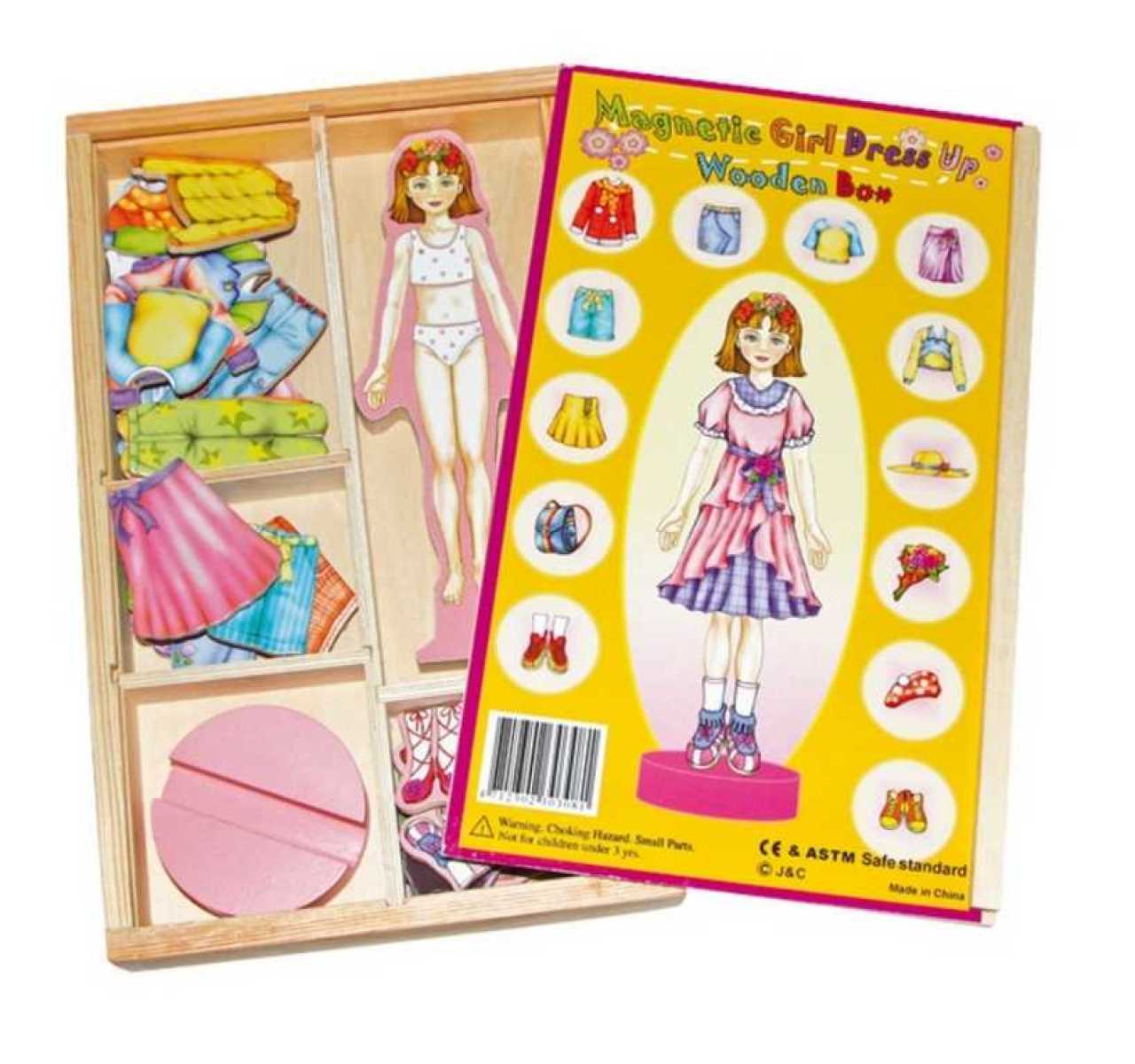 Dřevěné hračky - Převlékací magnetická panenka MagdaRozměry: 24x17cmVěk: 3+Panenku na dřevěné základně mohou děti oblékat různými magnetickými šaty. Součásti jsou boty, kalhoty, košile a šaty. Módní oblečení je sestaveno pro akce jako slavnostní koncerty nebo plážové párty.Německá firma Legler zaměřená na výrobu kvalitních dřevěných hraček od roku 1996. Všechny dřevěné hračky značky small foot mají označení CE a jsou vyráběny dle evropské normy pro bezpečnost hraček EN 71. Použité barvy jsou speciálně vyvinuty pro dřevěné hračky a jsou odolné i proti slinám dětí. Dřevo, které se používá pro tyto hračky, většinou pochází z lesnických společností zapojených do zalesňování. To nabízí všem zákazníkům možnost přispět k zachování přirozeně rostoucích lesů. Dřevěné hračky small foot jsou zářivě barevné produkty, které jsou vyrobeny převážně z přírodních surovin - dřeva. Dětem dělají radost od útlého věku, rozvíjí jejich hmatové a smyslové dovednosti. Cílem značky small foot je podporovat duševní a fyzický vývoj dětí.