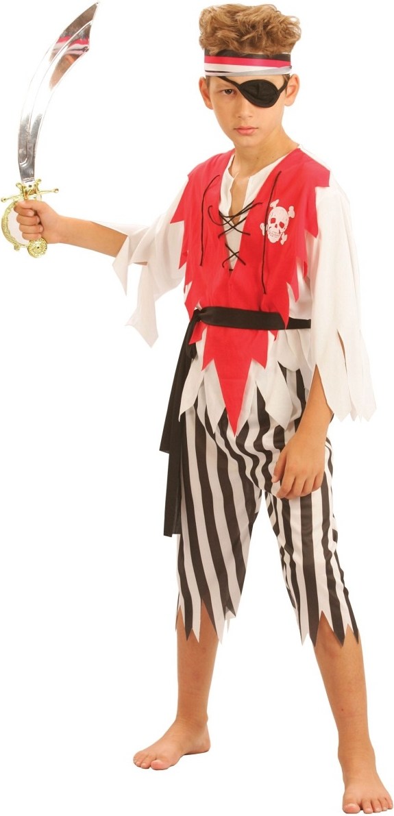 Detský kostým pre vekovú kategóriu 9 - 12 rokov, veľkosť 130 - 140 cm.Maškarné plesy a karnevaly sú obľúbenou detskou kratochvíľou, ktorá je schopná im vykúzliť krásny úsmev na tvári a tancom zahriať tváričky do ružova. Pripravte pre svoje deti ideálne masku a zaručte im pozornosť ich okolia. Vyjadrite vhodnou maskou ich osobnosť a podčiarknite ich dobré vlastnosti, roztomilosť i nezbednosť. Navyše si pri vytváraním doplnkov a ďalších drobnosti pre masku užijete skvelú zábavu a prehĺbite vzťah s dieťaťom. Následný karneval v maskách potom už bude len zavŕšením rodinnej pohody a trvalú spomienkou na bezstarostné detstvo. Pravý nezbedník si iste obľúbia tento kostým pravého Piráta. Štylizuje sa do odvážneho dobrodruha, ktorý sa ničoho nebojí a neustúpi pred žiadnou výzvou. Balenie obsahuje: Blúzu s vestou Nohavice Opasok Šatka Pásku cez oko Balenie neobsahuje: Meč Veľkosť: L (130 - 140 cm) Odporúčaný vek: 9 - 12 rokov.
