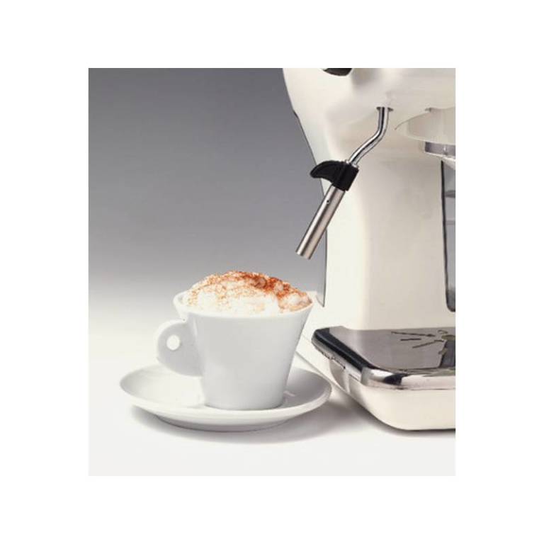Ariete ART 1389/13, bílá/béžová.Dodejte své kuchyni špetku elegance. Pořiďte si pákový kávovar od společnosti Ariete, který v sobě spojuje líbivý retro styl a moderní kvalitu s jednoduchým ovládáním. Přístroj vás na první pohled zaujme svými oblými křivkami, přehledným ukazatelem teploty a kompaktními rozměry, s nimiž se výborně hodí i do domácností, kde získá své zasloužené místo na kuchyňské lince. Ani nemá cenu hledat pro něj prostor na poličce, protože již po prvním použití si ho zamilujete natolik, že si budete s jeho pomocí kávu připravovat každý den, ne-li dokonce víckrát denně.Pěnič mléka.O kvalitní zpracování namleté kávy se stará motor s příkonem 900 W a tlak o síle 15 barů. Vyberte si, zda máte chuť na černou kávu, nebo si ji přejete doplnit nadýchaným jemným mlékem tvořícím neodolatelnou pěnu. Integrovaný pěnič mléka vás svou rychlostí a kvalitou práce posadí do kolen.Dva šálky najednou.Naštěstí se nebudete muset s drahou polovičkou hádat, kdo si svůj šálek aromatického potěšení vychutná dříve. Přístroj umožňuje tvorbu dvou nápojů zároveň, je proto ideálním společníkem do každé rodiny. Po skončení používání nebudete muset uklízet kuchyňskou linku, jelikož kapky nestříkají mimo a stékají do speciální odkapávací misky, jíž poté stačí pouze vypláchnout.Pohotovostní režim.Abyste nespotřebovávali více energie, než je skutečně nutné, přístroj se sám v době nepoužívání přepne do pohotovostního režimu. Opět ho aktivujete stiskem jakéhokoliv tlačítka a kávovar bez prodlev začne opět pracovat. .