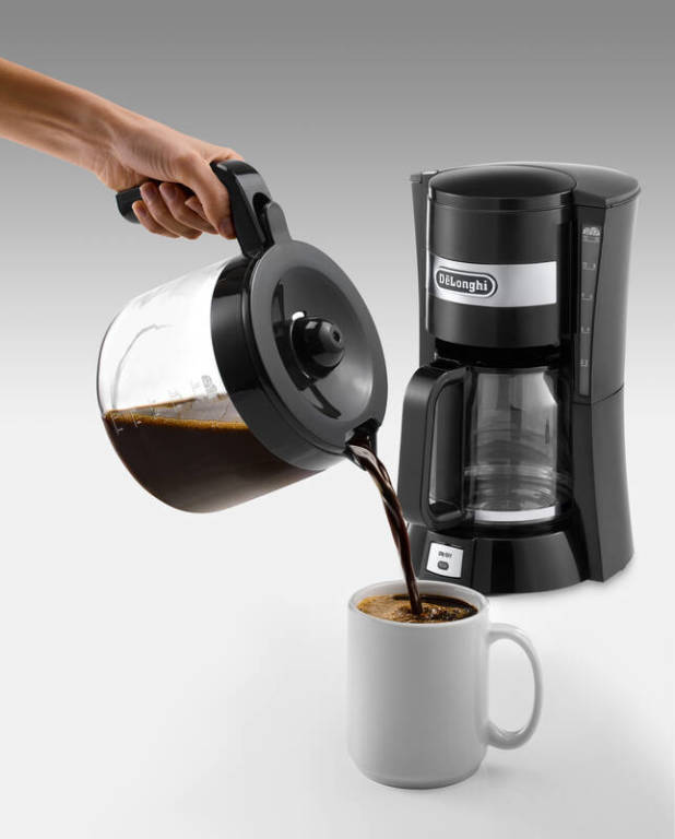 Kávovar De''Longhi ICM15210.1 Rádi si vychutnáváte plnou a lahodnou chuť vaší oblíbené kávy? To vše a ještě víc můžete zažít díky kávovaru De''Longhi ICM15210.1. Bezchybné vlastnosti Připravte si až 10 šálků kávy najednou. Se skleněnou konvicí o objemu 1,25 litrů a příkonem 900 W se vám to určitě podaří. Překapávací kávovar se bude vyjímat i v každé kuchyni díky svému černému provedení s nerezovými detaily. Výhody a funkce Kávu si již nemusíte přihřívat díky topné desce, která udržuje teplotu kávy po.