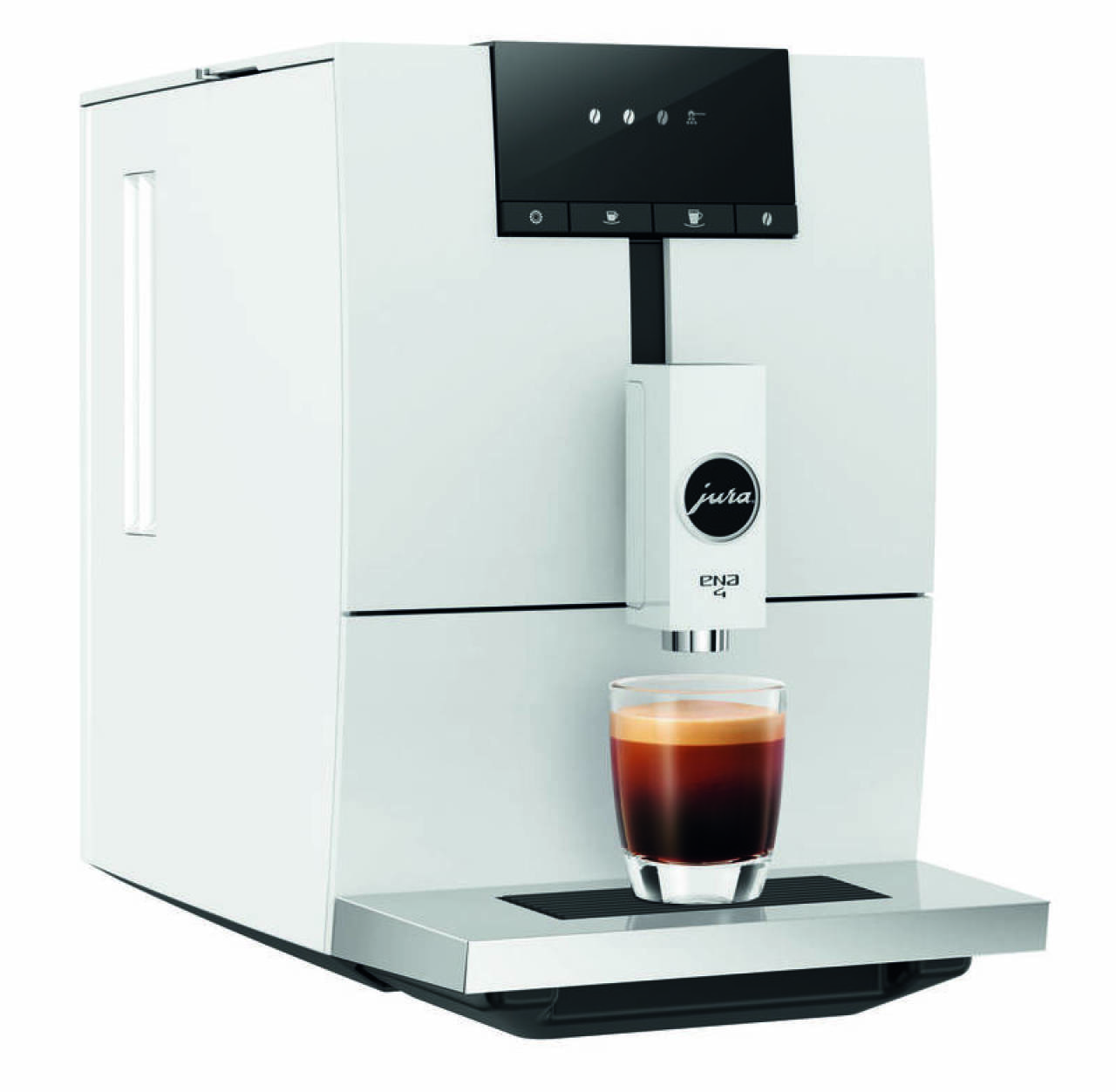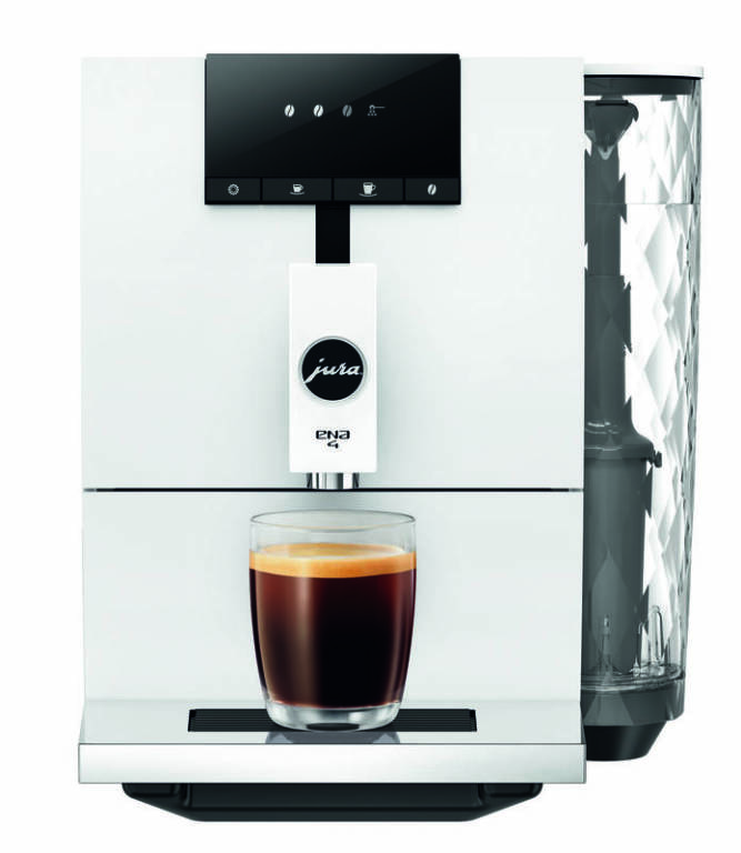 Automatický kávovar tlak 15 bar, samočisticí systém, nastavení množství kávy, nastavení množství vody, odkapávací systém, funkce horké vody, režim úspory energie, signalizace potřeby odvápnění, nahřátí kávovaru do 25 vteřin, kompaktní rozměry a 2 kávové receptury (espresso, lungo), objem nádržky na vodu 1,1 l, mechanismus mletí kónické kameny, velikost zásobníku mlýnku 125 g, stupně hrubosti mletí 5, příkon 1450 W, šířka 27,1 cm, výška 32,3 cm, hloubka 44,5 cm, hmotnost 8,4 kg Dobré ráno začíná dobrou kávou. JURA ENA 4 Full Nordic White (EA) během chviličky nachystá z namleté kávy horký nápoj tmavé barvy a typického aroma. Kávovar pracuje při tlaku 15 bar, splňuje tak minimální hodnoty pro nachystání lahodného espressa jako z kavárny. Kávovar disponuje širokým množstvím nastavení, obzvláště lze regulovat množství kávy i použité vody a díky tomu vyladit intenzitu nápoje přesně podle chuti. V jeho ústrojí pracují kónické kameny a zvládne 5 různě.