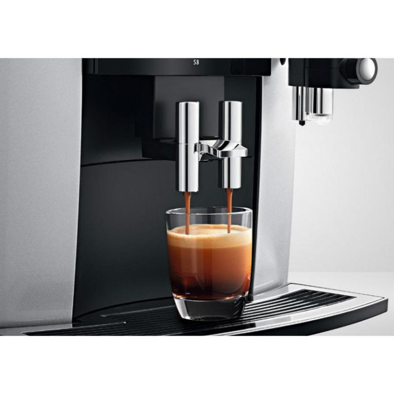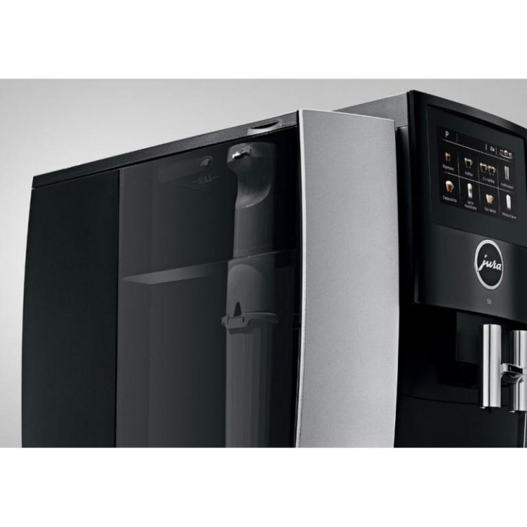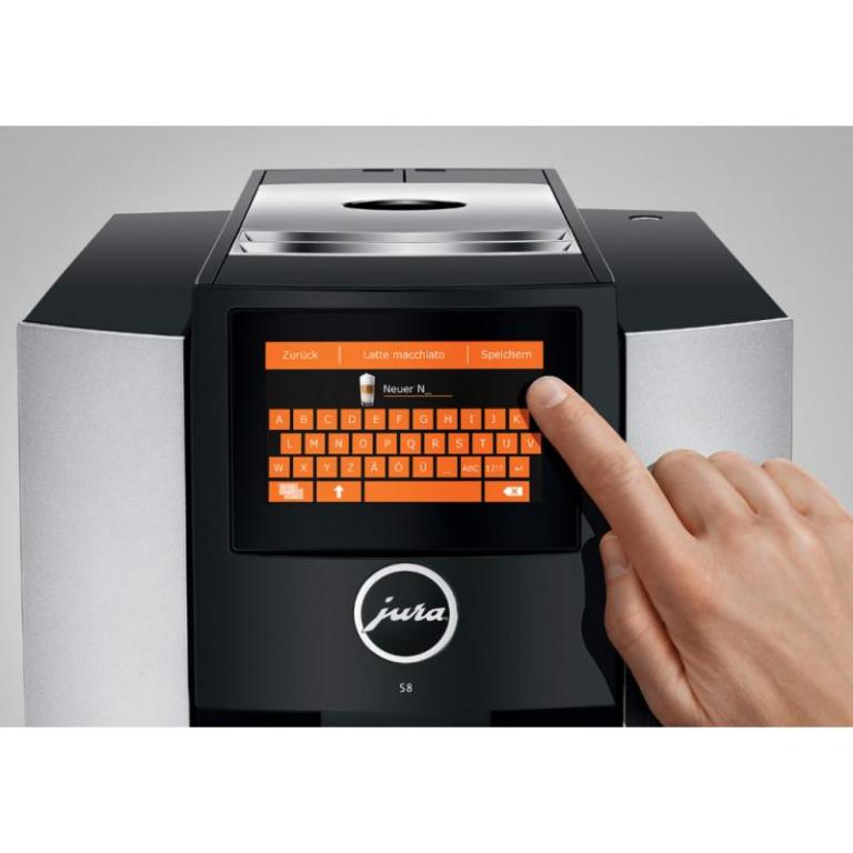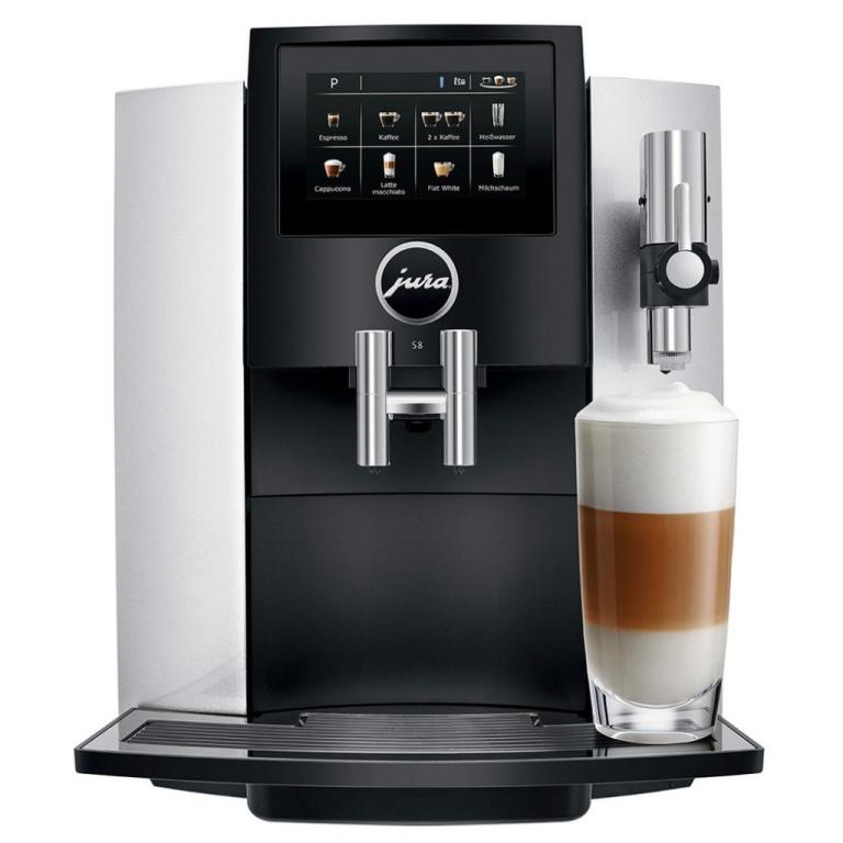 automatický kávovar.. připravíte 15 nápojů.. příkon 1 450 W.. 1,9l nádržka na vodu.. 280g zásobník na kávu.. integrovaný AromaG3 mlýnek.. profesionální šlehač mléčné pěny.. impulzní extrakční proces P.E.P.. filtrační patrony Claris Smart.. ohřev termoblokem.. 10 úrovní síly kávy.. programovatelný objem vody.. automatické čisticí programy.JURA S8, Moonlight Silver.Švýcarský výrobce kávovarů Jura nabízí všem milovníkům aromatického nápoje robustní plně automatický kávovar, který splní i ta nejnáročnější přání svých uživatelů. Příkon 1 450 W se stará o rychlé zahřátí a udržování konstantně vysoké teploty vody, která je uložena v 1,9litrové nádobce a připravena k použití. Vyberte si z bohaté nabídky 15 různých nápojů a stiskem jediného tlačítka si navolte, zda si přejete připravovat kávu do jednoho, nebo do dvou šálků zároveň.Šlehač mléčné pěny.Pro ještě lepší chuť a výraznější aroma se káva připravuje z čerstvě namletých zrn. Ty stačí nasypat do 280g zásobníku a mlýnek AromaG3 se poté postará o důkladné rozemletí a zachování vůně i chuti. Pokud nejste milovníky černé kávy, vytvořte si např. cappuccino, které využitím profesionálního šlehače obohatíte o nadýchanou jemnou mléčnou pěnu. Každému sedne jiná intenzita nápoje, na výběr jich zde máte hned deset, takže si snadno nastavíte parametry podle vlastních preferencí, aby vás ráno spolehlivě nastartoval šálek kávy přesně podle vašeho gusta.Bohatá nabídka 15 programů zajistí, že si každý člen rodiny vychutná naplno svůj vlastní oblíbený druh aromatického nápoje!Široký výběr káv.Vyberte si z bohaté nabídky 15 funkcí, které vám přístroj nabízí. Můžete s ním naprogramovat individuální nápojové speciality latte macchiato, cappuccino, flat white, caffe latte, espresso macchiato nebo vytvořit 2 kávy najednou. Jediným dotykem tlačítka si lze navolit 1 kávu, 2 espressa, 1 espresso, 2 ristretta, 1 ristretto, mléčnou pěnu nebo mléko.Švýcarský design.Nejen, že budete kávovar každý den používat pro jeho bohaté funkce a snadné ovládání. Kromě toho také vizuálně obohatí celou místnost, pyšní se totiž vysoce kvalitním provedením, které je známkou švýcarské designové kvality.Mléčná pěna.Pro lahodné cappuccino využijte integrovaný profesionální šlehač mléčné pěny. Bez vaší asistence přístroj zvládne vytvořit nadýchanou jemnou pěnu, která dodá celému nápoji ten správný nádech a chuť.Mlýnek Aroma G3.Do zásobníku s kapacitou 280 g vložte čerstvá kávová zrna a za pomoci kvalitního mlýnku Aroma G3 si namelte přesnou dávku kávy. Tím, že dojde ke mletí těsně před přípravou nápoje, máte zaručenu jeho intenzivní chuť a neodolatelné aroma, která se nedá srovnávat s běžnou instantní kávou.Ovládání OneTouch.Nastavte si požadovaný program stiskem jednoho tlačítka. Ovládání kávovaru je intuitivní a snadné, bez obtíží ho zvládne každý.