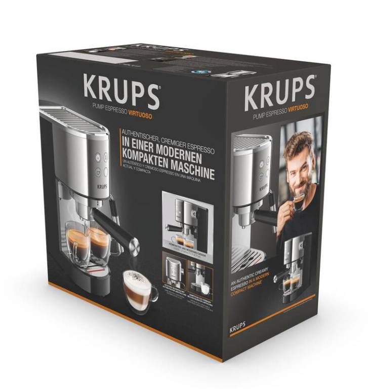 Pákový kávovar KRUPS Virtuoso Vám připraví lahodné espresso během chvilky.