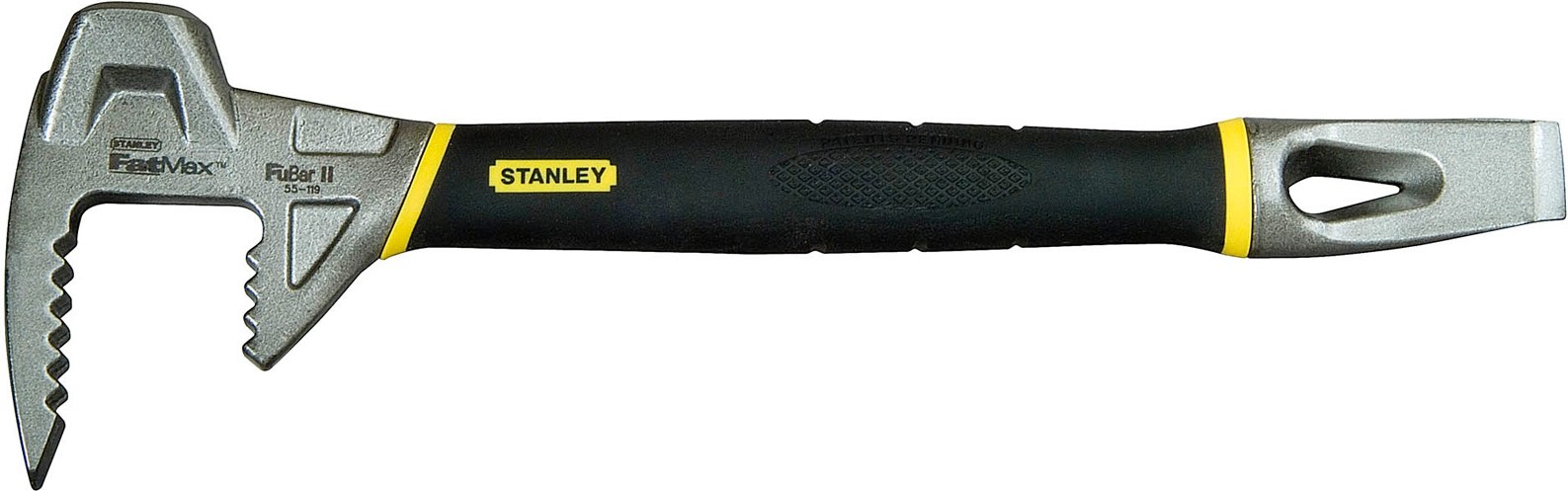 STANLEY Demolačné náradie FatMax FuBar 1-55-119.Demolačné náradie - 380mm.Multifunkčné demolačné náradie na páčenie, delenie, ohýbanie dosiek a foršní, pritĺkanie.Menšia hmotnosť dovoľuje častejšie používanie ako palice.Vykovaný z jedného kusa vysokoakostnej uhlíkovej ocele na dosiahnutie vysokej pevnosti a odolnosti.Vrúbkovaný tvar čeľuste.Kalená a popustená oceľ sa neštiepi.Vrúbkovaný povrch gumovej rukoväti zvyšuje presné ovládanie a pohodlie pri práci.Je možné zavesiť do opaskového oka na kladivo.
