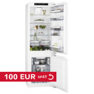 Vestavná kombinovaná chladnička v energetické třídě F s celkovým objemem 285 l, elektronickým ovládáním a úsporným LED osvětlením. AEG SCB819F8FS disponuje dalším úložným prostorem v horní části a panelem s LED displejem pro snadný přístup k nastavení teploty a dalších funkcí.