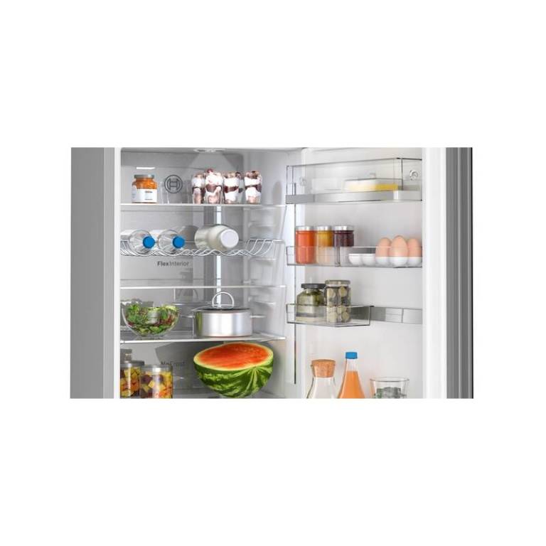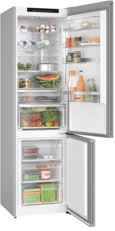 Lednice s mrazákem dole, energetická třída C, klimatická třída SN-T, objem ledničky 260l, objem mrazáku 103l, panty vpravo, počet polic lednice 5, počet přihrádek mrazáku 3, počet chladicích okruhů 2, černá barva, funkce: total No Frost, samoodmrazovací mrazák, automatické odmrazování, displej, nulová zóna, LED osvětlení, indikace otevřených dveří chladničky, super chlazení, super mrazení, twin Cooling, Multi-AirFlow, elektronické ovládání teploty, 203×60×66.5 cm (V׊×H) Lednice Bosch obsahuje společně s chladicí částí i mrazicí část a proto se jedná o ideální volbu pro každou domácnost. Jedná se o volně stojící model, který stačí umístit do kuchyně bez větších úprav interiéru. Při výběru místa nemusíte zvažovat směr otvírání dvířek, panty jsou situovány napravo, ale dvířka máte možnost obrátit. Lednice BOSCH KGN39LBCF přísluší do úsporné energetické třídy C. Lednice BOSCH KGN39LBCF patří do energetické třídy C. Její klimatická třída má značení SN-T. Emise.