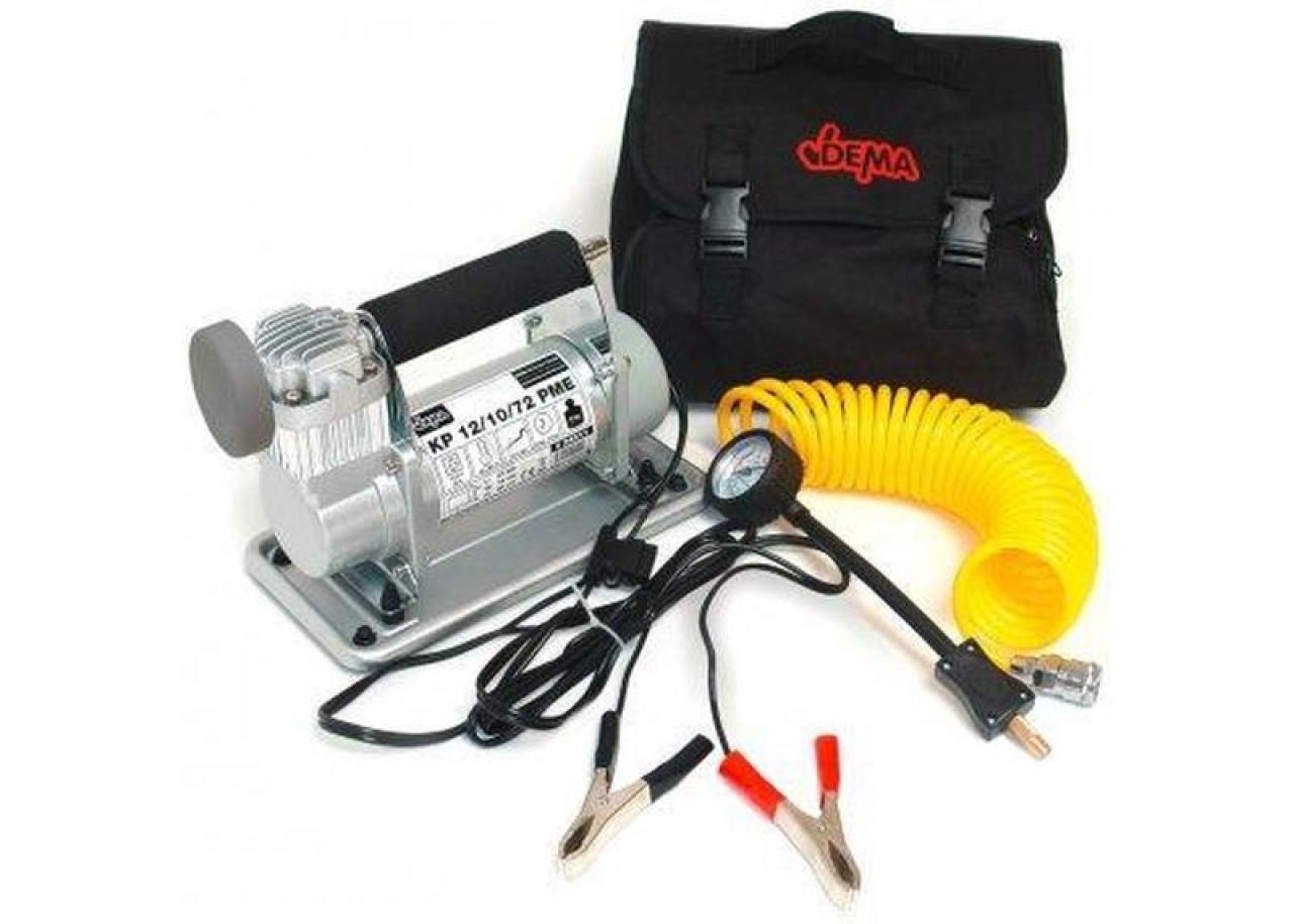 kompresor.. napájení 12 V.. maximální průtok vzduchu 72 l/min.. výkon 13,8 V / 30 A.. maximální pracovní tlak 150 psi (10 bar).. pracovní teplota od –55 °C až do +60 °C.. maximální zatížitelnost 40 min (při tlaku 40 psi a teplotě 24 °C).. délka spirálové hadice 3,3 m.. přívod proudu svorkami z baterie (délka 2,4 m).. separátní spínače pro zapnutí a vypnutí.. separátní jištění, včetně 2 náhradních pojistek.. hladina akustického výkonu (LwA) 40 dB.