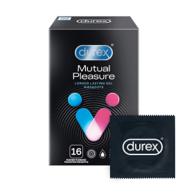 Je předčasná ejakulace překážkou ve vašem milování? Nejste jediní, koho to trápí, a proto Durex přichází s kondomy Mutual Pleasure, které váš intimní zážitek prodlouží díky použitému lubrikantu s obsahem benzocainu, zintenzivní díky výstupkům a vroubkům a třeba vám i dopřejí zažít společné vyvrcholení. Vyzkoušejte je a milujte se vášnivě dlouze.