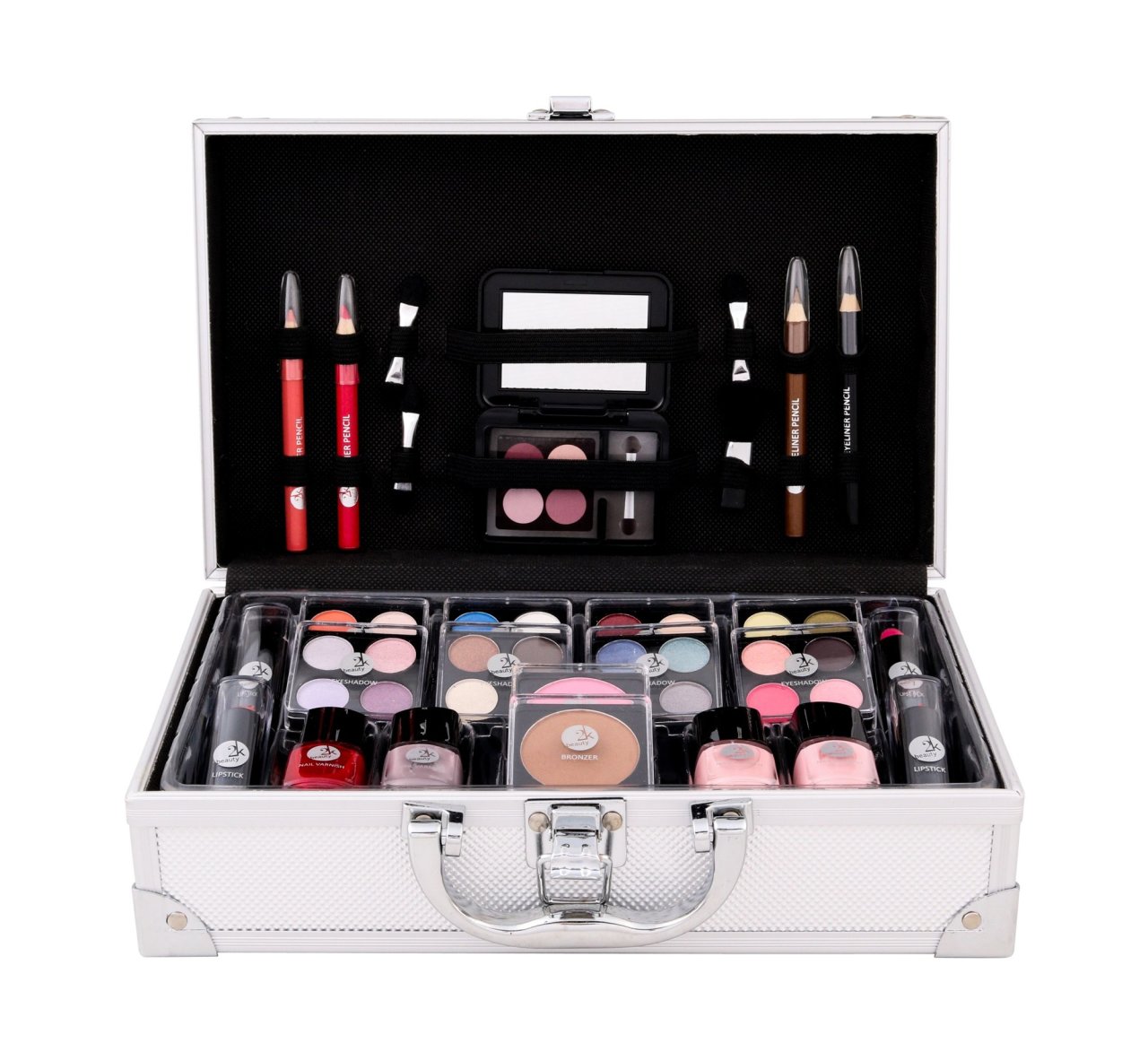Makeup Trading Everybody´s Darling dekorativní kazeta 74,6 g pro ženy. Kufr dekorativní kosmetiky **Makeup Trading Schmink Set Alu Case**. **Rozměry kufru**: 25 x 16 x 9 cm **Materiál:** hliník **Složení kufru**: * 32 x Eyeshadow - oční stíny, * 2 x Blusher - tvářenka, * 4 x Lipstick - rtěnka, * 4 x.