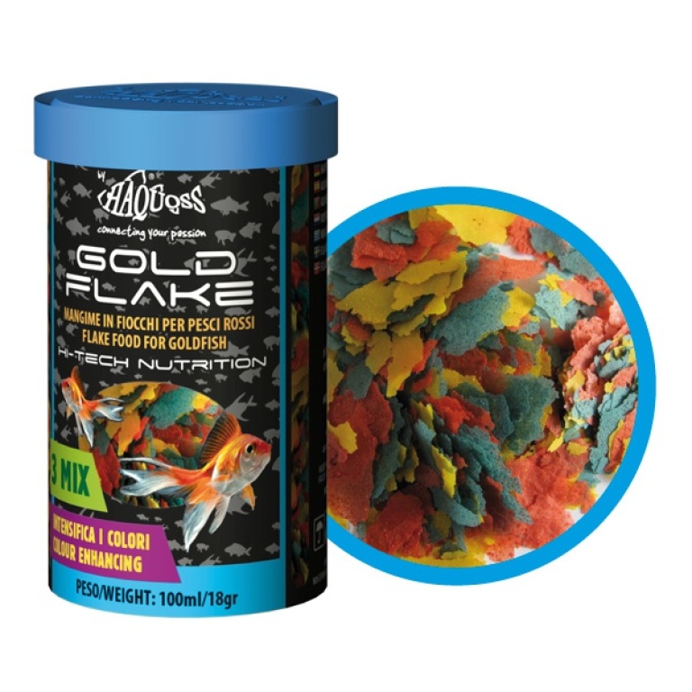 Krmivo pro sladkovodní ryby Kompletní vločkové krmivo pro okrasné studenovodní ryby. Vyrábí se zvláštním způsobem, aby byla zachována kvalita vlastností použitých složek (mastné kyseliny, beta-glukan, beta karoten, ASTAXANTHINA, aminokyseliny, vitamíny, stopové prvky). Plovoucí a barvou obohacené vločkové krmivo. SLOŽENÍ: ryby, krevety, sójové boby, pšenice, korýši, rýže, česnek, mrkev, špenát, mořské řasy, barvivo, antioxidanty, lecitin. KRMENÍ: Několikrát denně v malých dávkách.