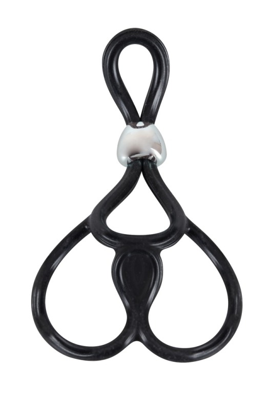 Kroužek na penis a zároveň na varlata, vyzdobte se jím! Lze jej pohodlně nastavit a užívat si můžete i jeho ohebnost. Průměr kroužků na varlata je 3 cm a vyroben je ze silikonu a ABS plastu.