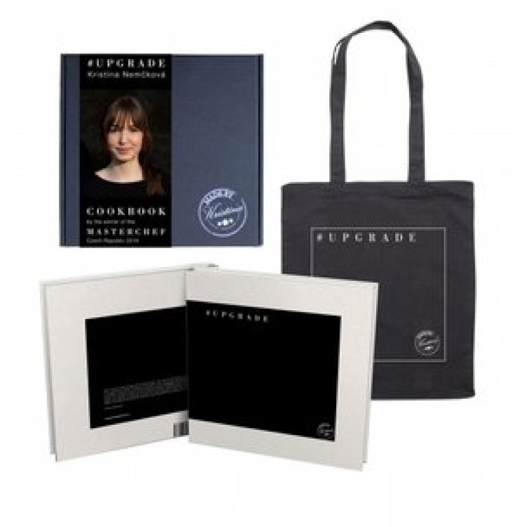 Jsem Kristína Nemčková, nejmladší vítězka soutěže MasterChef na světě a taky autorka kuchařské knihy #UPGRADE plné tradičních, ale i inovativních československých receptů. Dárkové balení obsahuje kuchařku v anglickém jazyce a v balení vás jistě potěší i černá látková taška.Milujete tradiční československá jídla a občas v kuchyni rádi experimentujete? Pochutnáte si na klasických receptech, které vaří naše babičky, ale chutnají vám i moderní jídla? Pak je moje první kuchařská kniha #UPGRADE právě pro vás! Ráda o této knize mluvím jako o rodinném projektu. Na jejím vzniku se podílela celá moje rodina, hlavně babička Pavlínka. Ta připravila klasické československé recepty. Jako třeba tradiční halušky, krémovou svíčkovou nebo ty nejlepší nadýchané buchty. Já jsem se postarala o to, že k tradičním pokrmům vždy najdete i můj přetvořený recept - #UPGRADE. Kuchařka je napsaná tak, aby se v ní našli jak nováčci v kuchyni, tak i zkušenější, kteří se nebojí zkoušet moderní recepty. Naše kuchařka obsahuje 40 babiččiných a 39 mých receptů. Najdete v ní i 12 základních receptů, které vám pomohou zvládnout základy - pořádně silný vývar, jíšku nebo třeba domácí máslo. Dohromady si tedy budete moci uvařit 91 výborných receptů. Babička Pavlína mi byla ve vaření vždy inspirací. Teď může být i vám. Připravila celkem 40 tradičních jídel ze své poctivé kuchyně, včetně jejích triků a rad. Tato jídla jsou perfektní i pro začátečníky – vyzkoušíte si na nich to pravé, poctivé vaření a v kuchyni si začnete být jistější. Moje recepty vždy vychází z tradičních jídel. Jsou jen trochu modernější, nebo jinak poskládané. Babiččiny recepty se pro mě staly odrazovým můstkem pro nové tvoření. Každý můj recept je rozdělený do jednotlivých komponentů. Díky tomu si můžete i vy skládat úplně nová jídla! Perfektní pro všechny, kteří chtějí začít v kuchyni trochu více experimentovat.