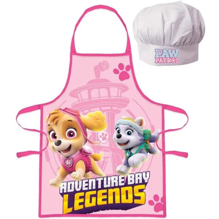 Set dětské zástěry a kuchařské čepice pro holky Tlapková patrola - Paw Patrol - s obrázkem "tlapek" Skye a Everest. Zástěra je vhodná pro malé kuchařky, ale i do výtvarné výchovy, do keramiky, či jako pracovní zástěra k různým školním i mimoškolním pracovním činnostem. Tento kuchařský set je vhodný pro děti 3 - 8 let. Lze jej prát při teplotě do 60°C. TIP.